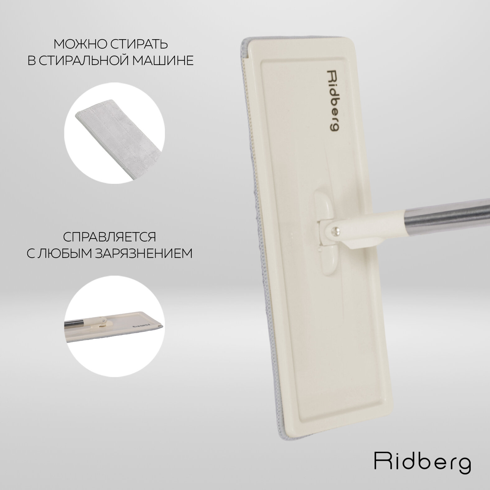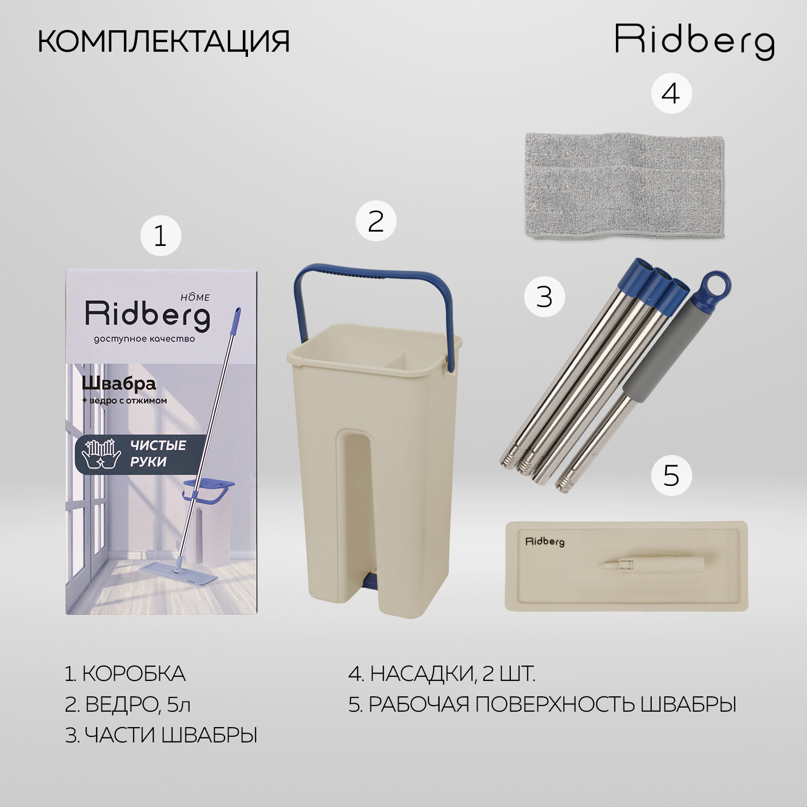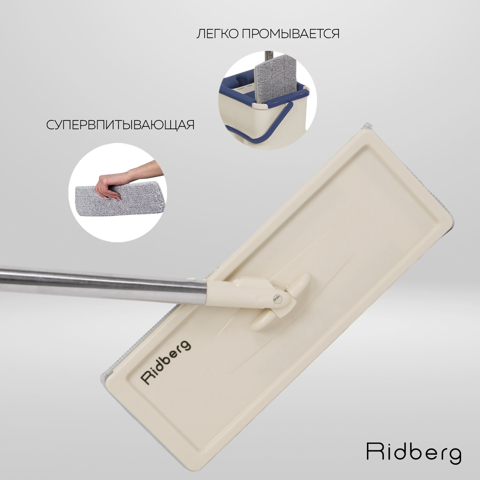 Швабра Ridberg с ведром для отжима Premium Plus (White) / 2 насадки в комплекте