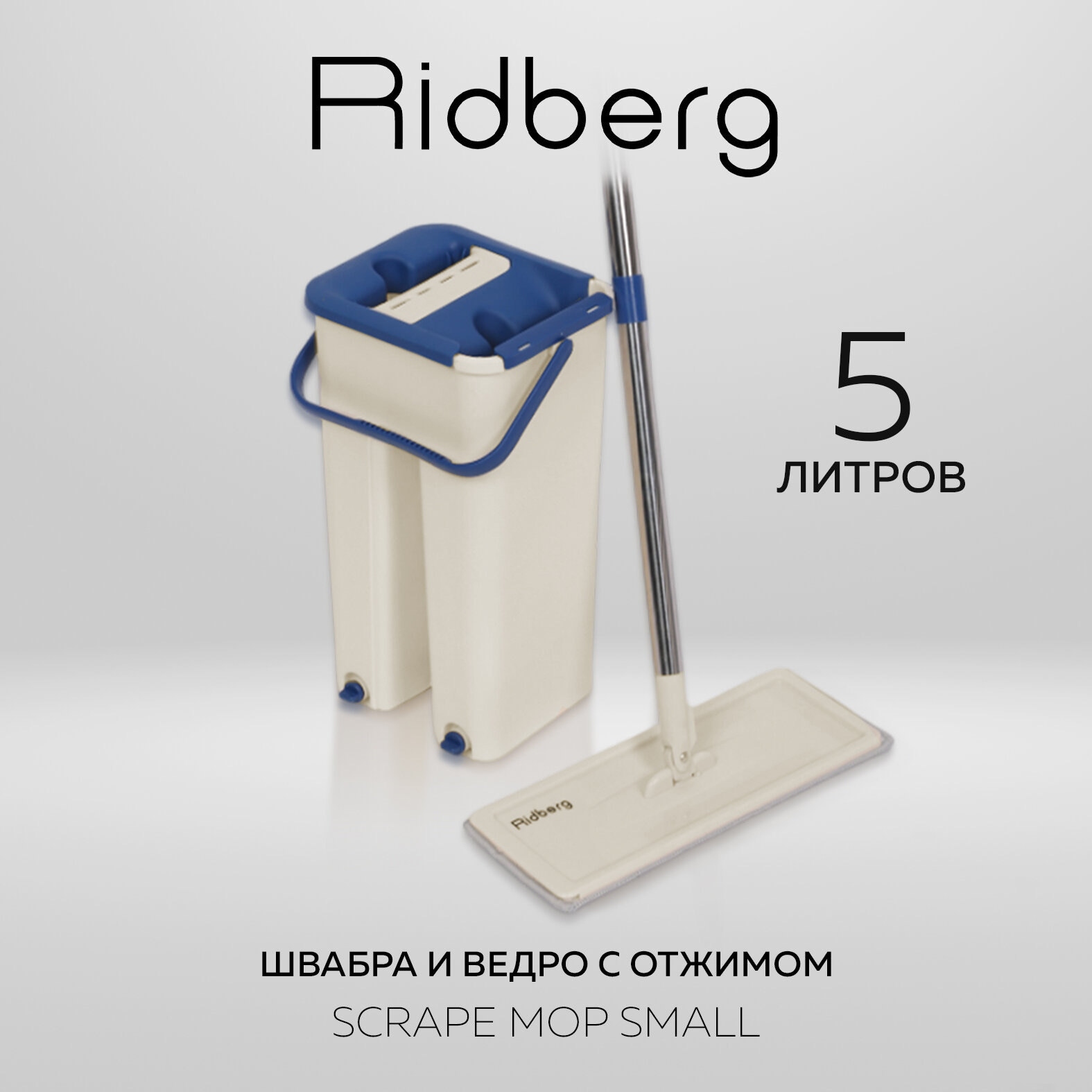 Купить Швабра с отжимом и ведром Ridberg Scrape Mop (Blue) / 5 л. / 2 микрофибры в комплекте