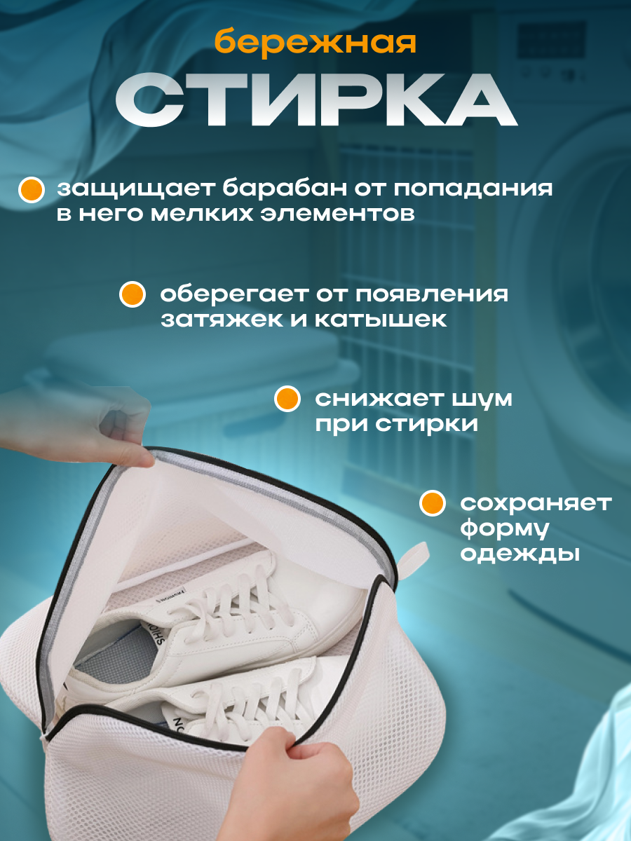 Мешок для стирки обуви и одежды в стиральной машине (сетка, чехол), 36х30х12 см