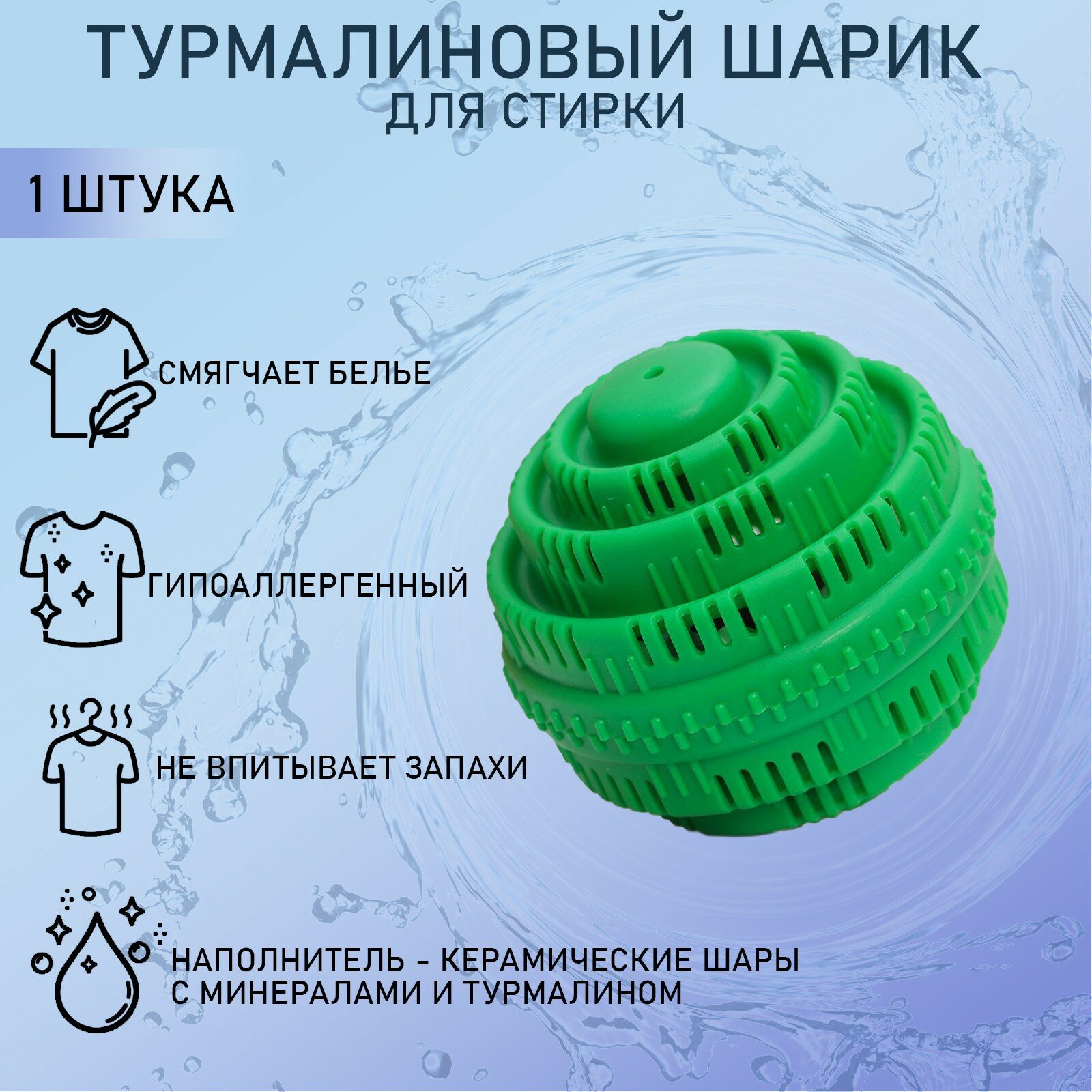 Шарик для стирки Доляна турмалиновый, цвет микс интересное: