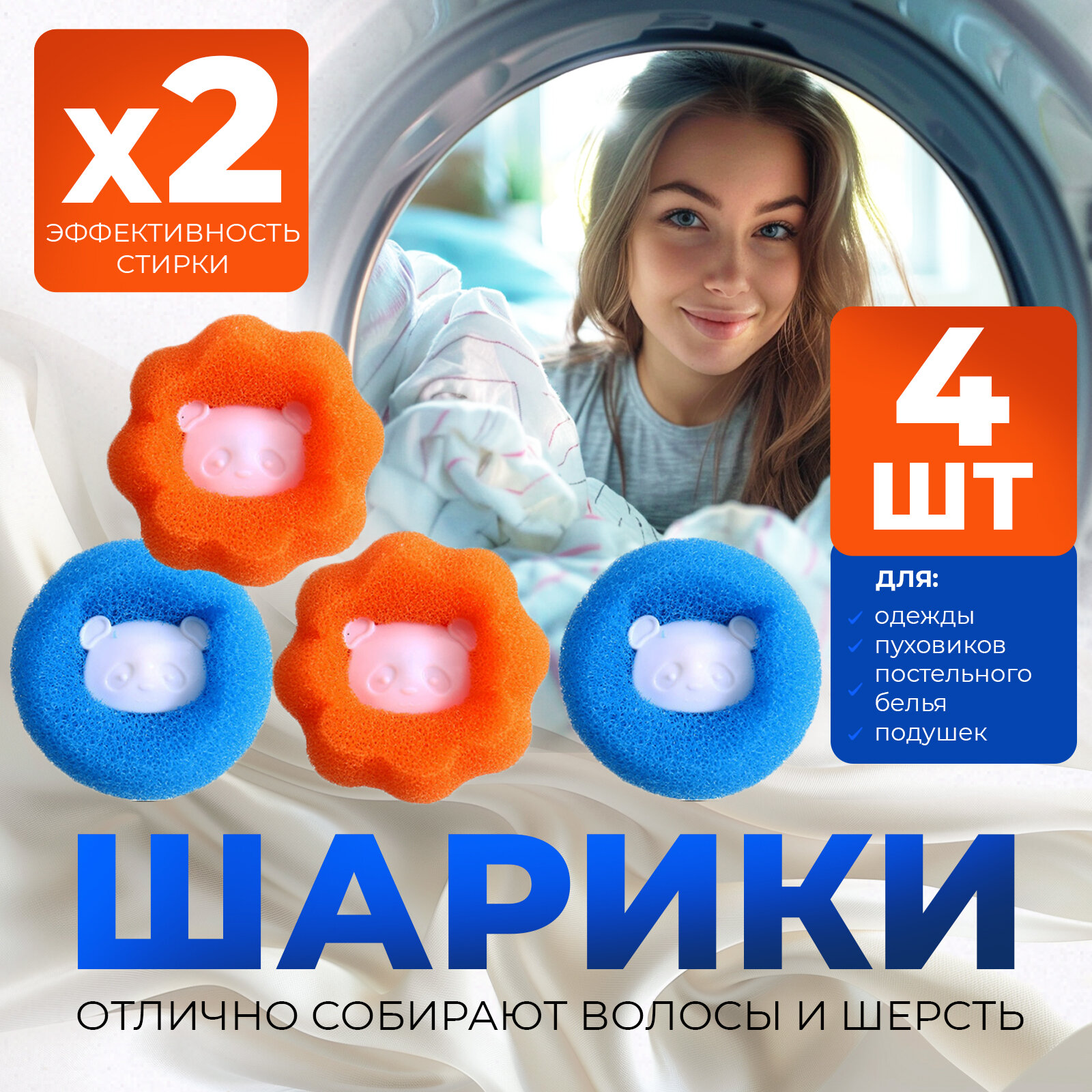 Купить Шары для стирки одежды, 4 штуки