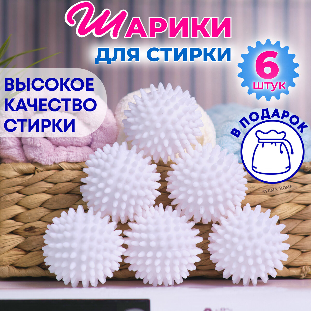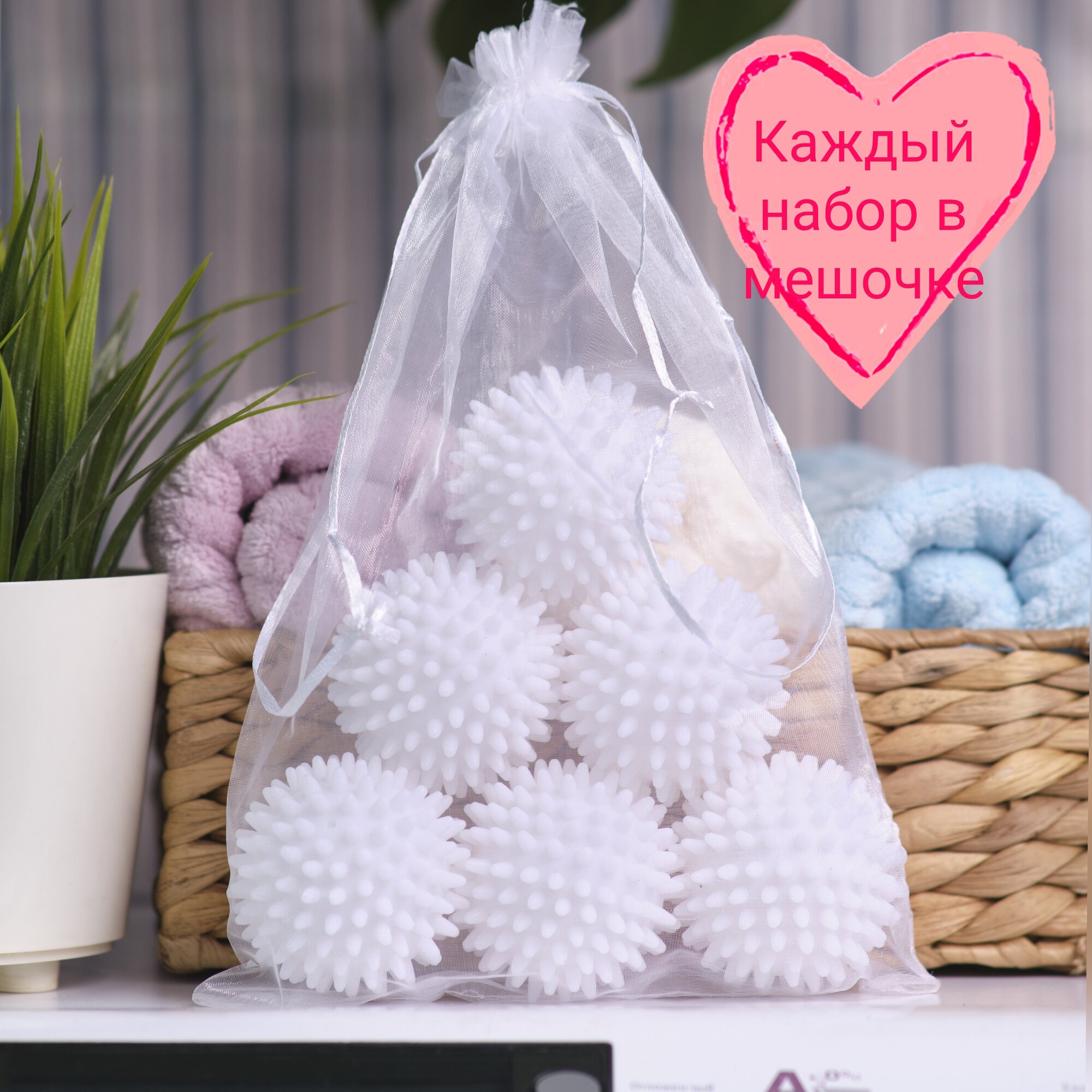 Шарики для стирки белья и пуховиков, от волос, 6 штук
