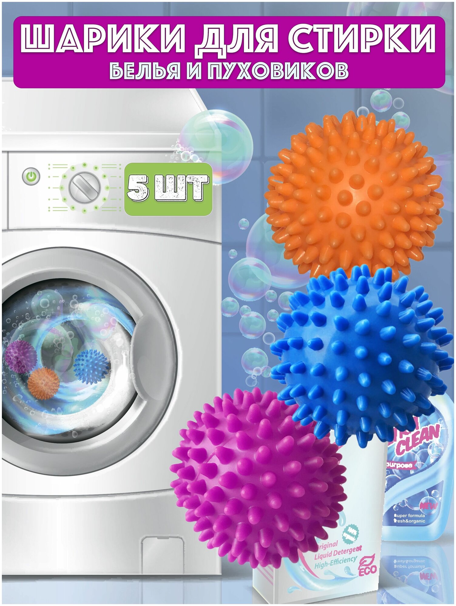 Набор шаров мячиков для стирки и сушки белья и пуховиков в стиральной машине 5 штук интересное: