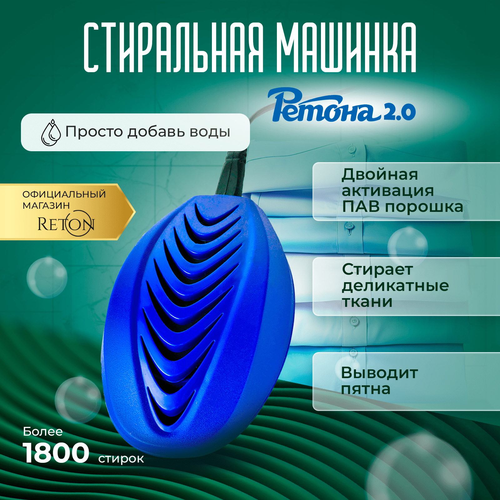 | Дополнительная информация | Дезинфекция белья - за 1 час работы, УСУ "Ретона", убивает до 70% вирусов и бактерий, имеются и другие положительные эффекты от воздействия ультразвуком. |