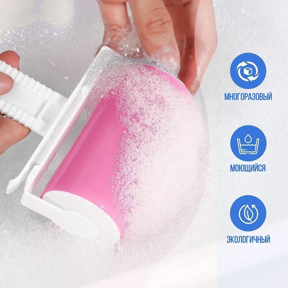 Ролик многоразовый для чистки одежды и мебели, липкий универсальный, моющийся, 10 см., розовый интересное: