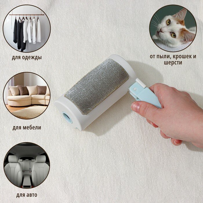 Купить Ролик для одежды с велюровой щеткой, 55 листов, цвет белый с голубым, 2 штуки