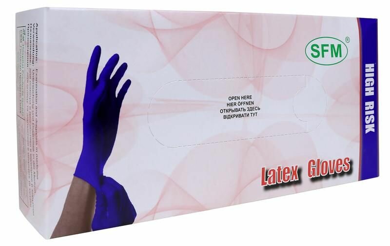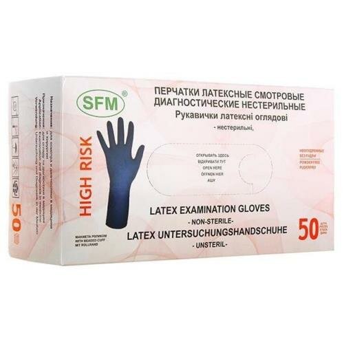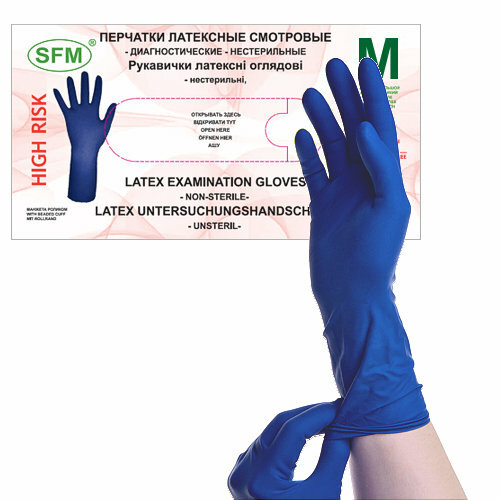 Перчатки смотровые SFM High-risk Latex повышенной прочности, 25 пар, размер: S, цвет: синий