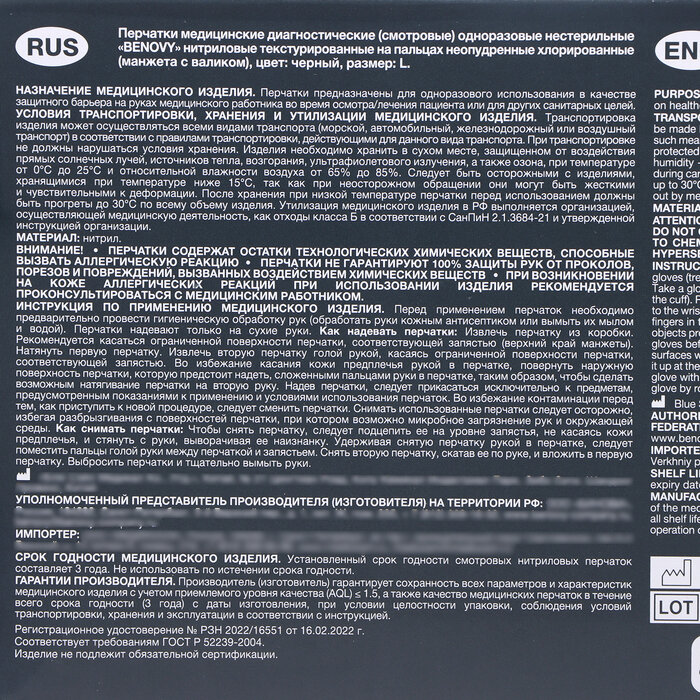 Перчатки нитриловые BENOVY 50 пар, размер L ( черные) интересное: