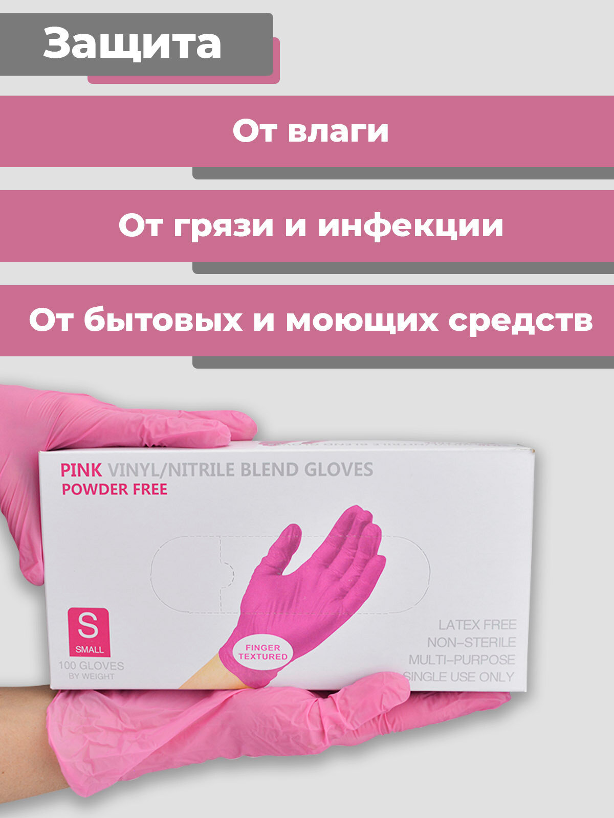 Купить Перчатки нитриловые одноразовые Wally Plastic (розовый, размер XS, 100 штук)