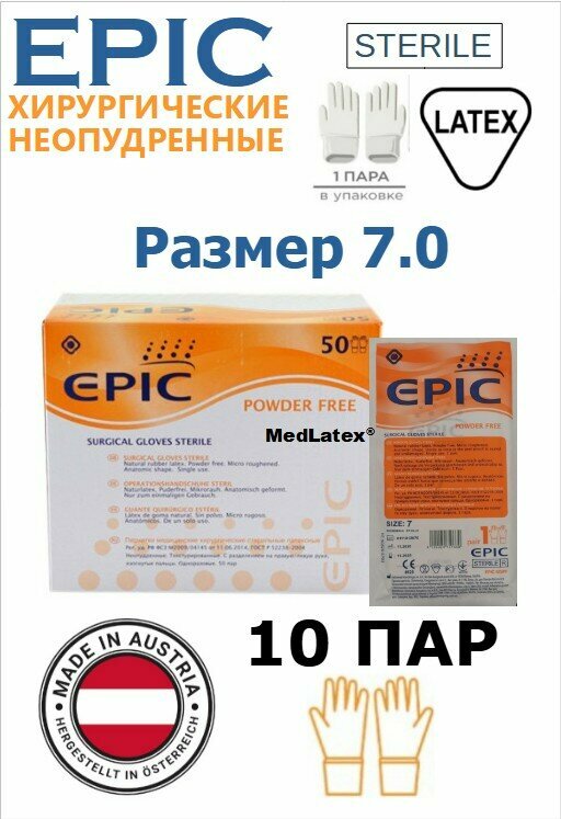 Перчатки латексные хирургические стерильные неопудренные EPIC (Эпик) SG PF, размер 7.0, 20 штук (10 пар) интересное: