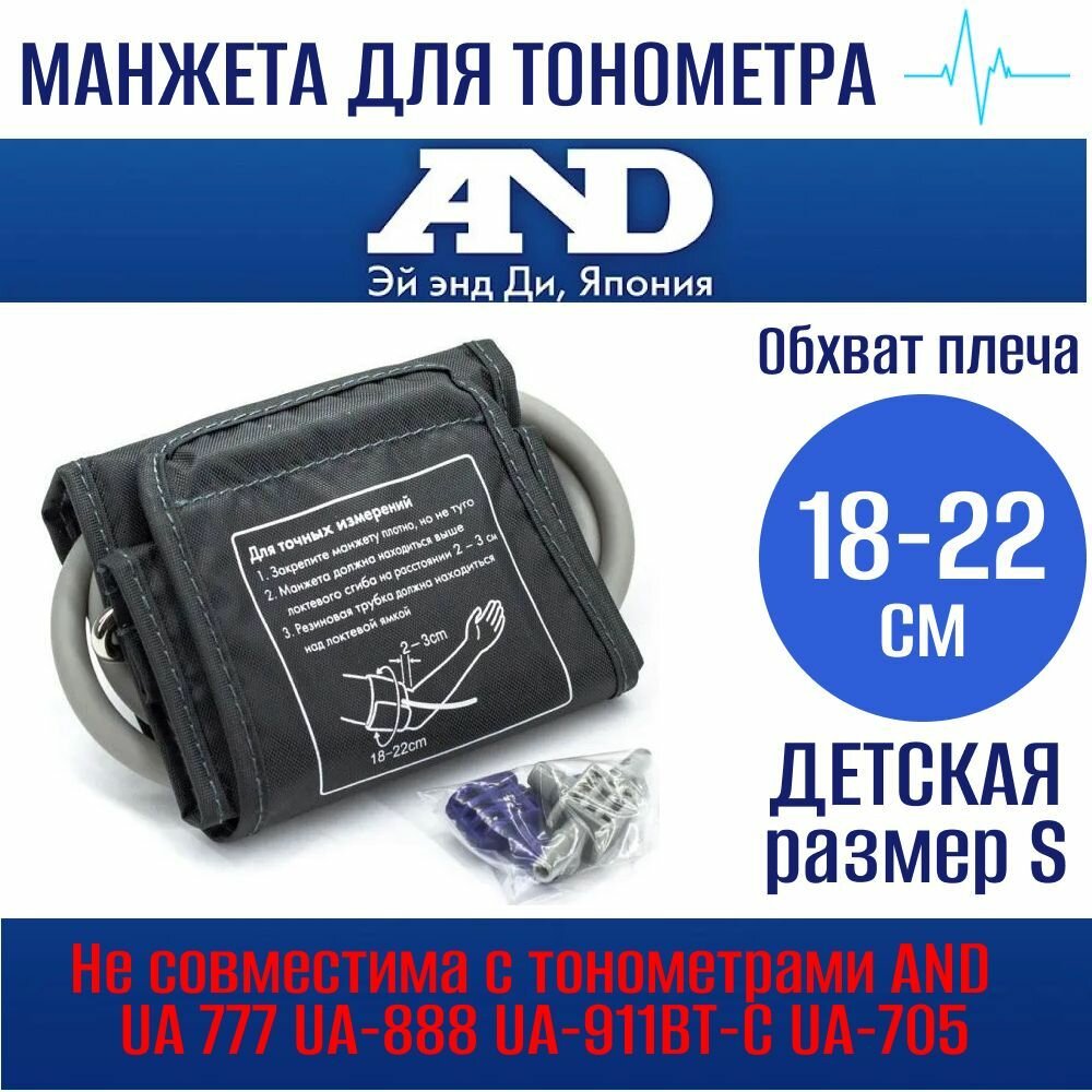 Купить Манжета AND детская 18-22 см S для цифрового тонометра AND малая с одной трубкой