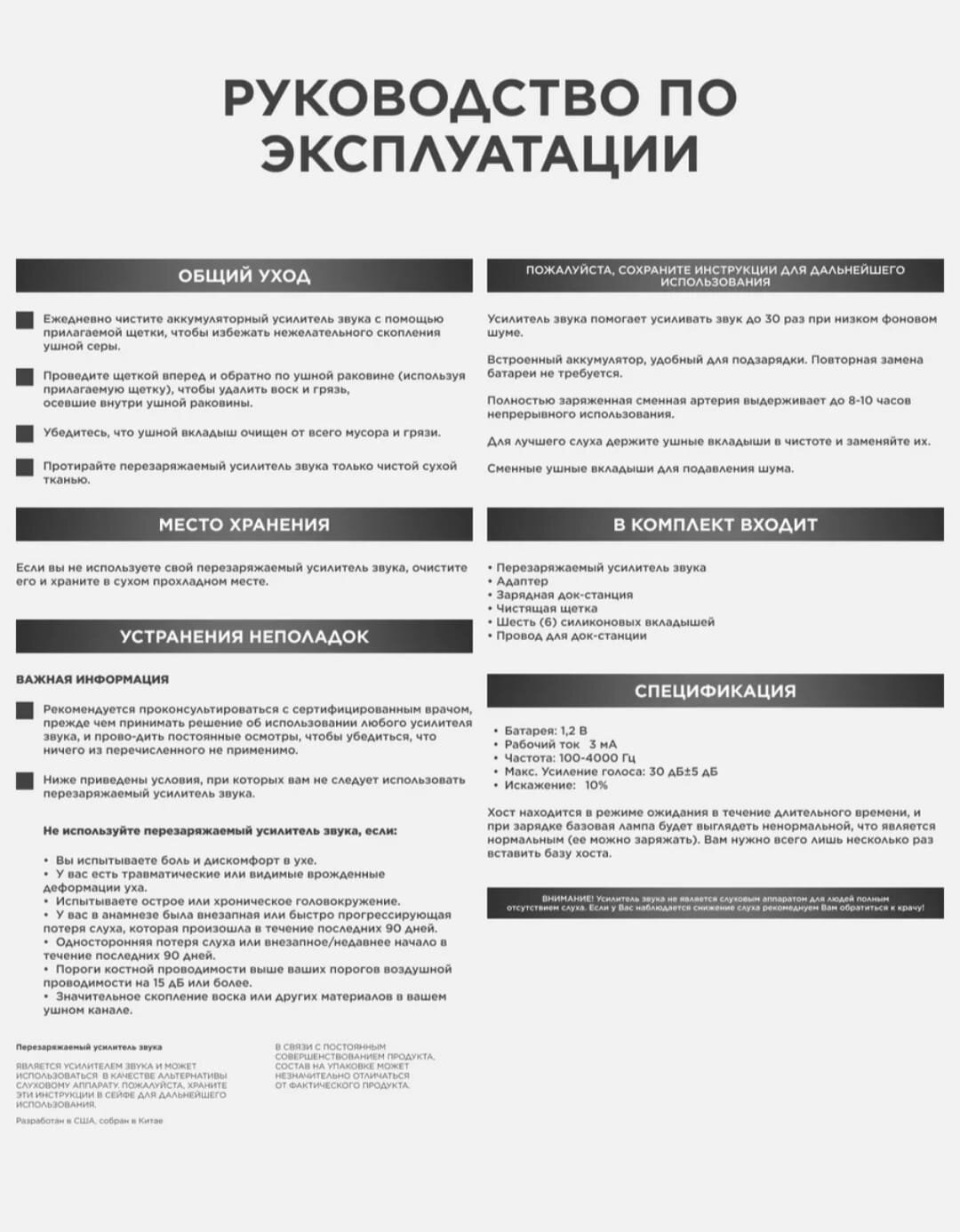 Аккумуляторный слуховой аппарат Ultra Sound Amplifier up to 30x интересное: