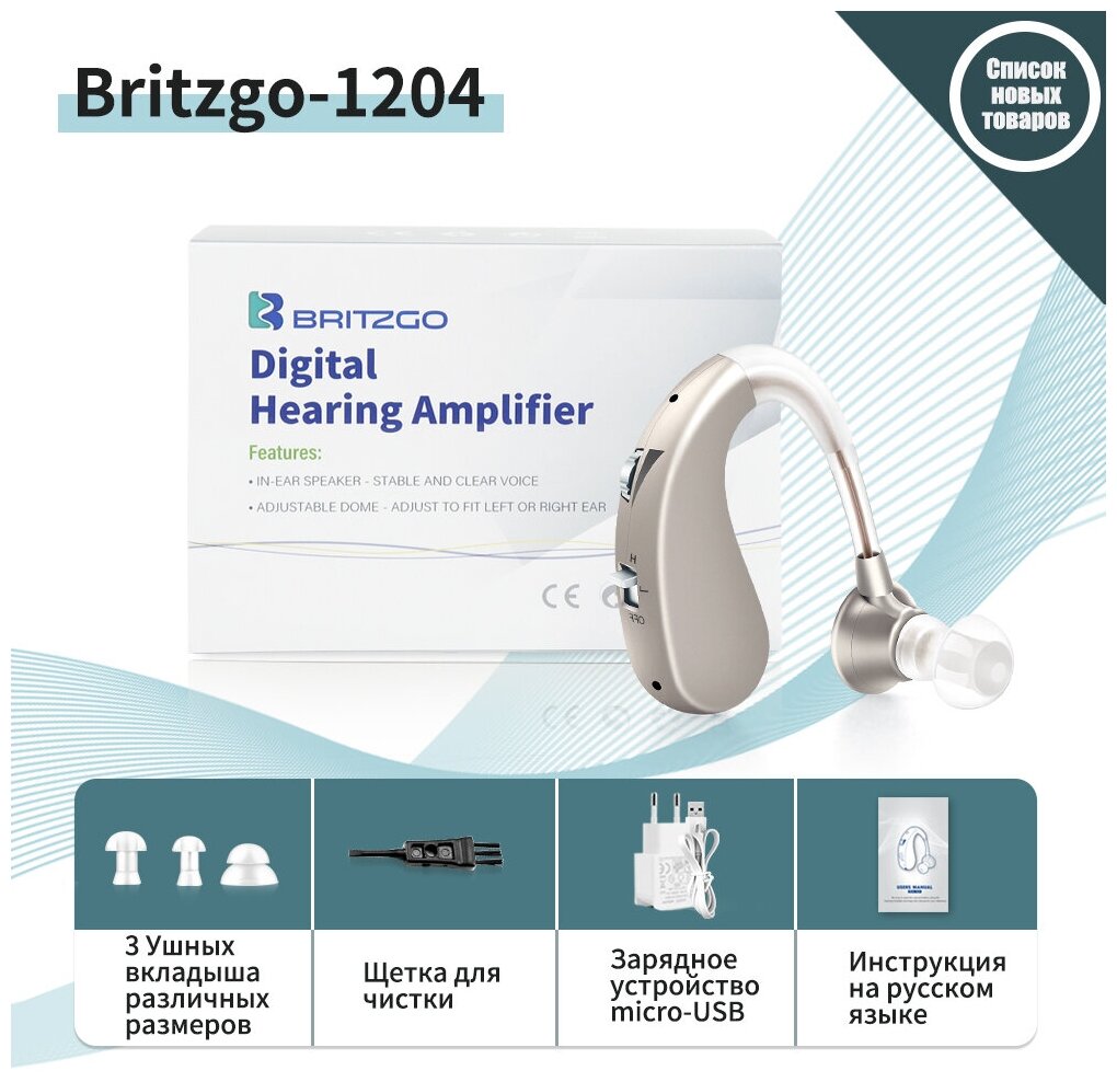 Заушный цифровой усилитель слуха для пожилых на аккумуляторе Слуховой аппарат с зарядным устройством BRITZGO-1 интересное: