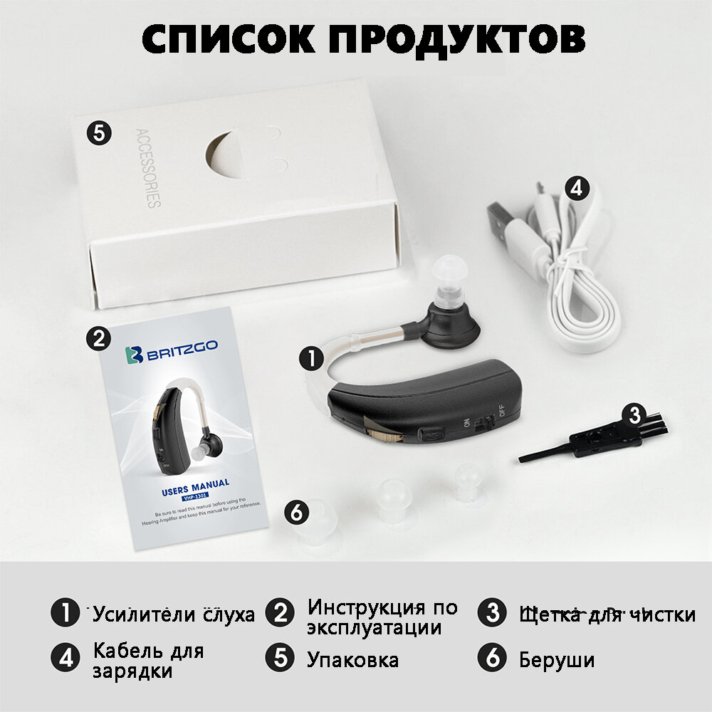 Цифровые слуховые аппараты для пожилых и взрослых, усилитель слуха с зарядным устройством Britzgo интересное: