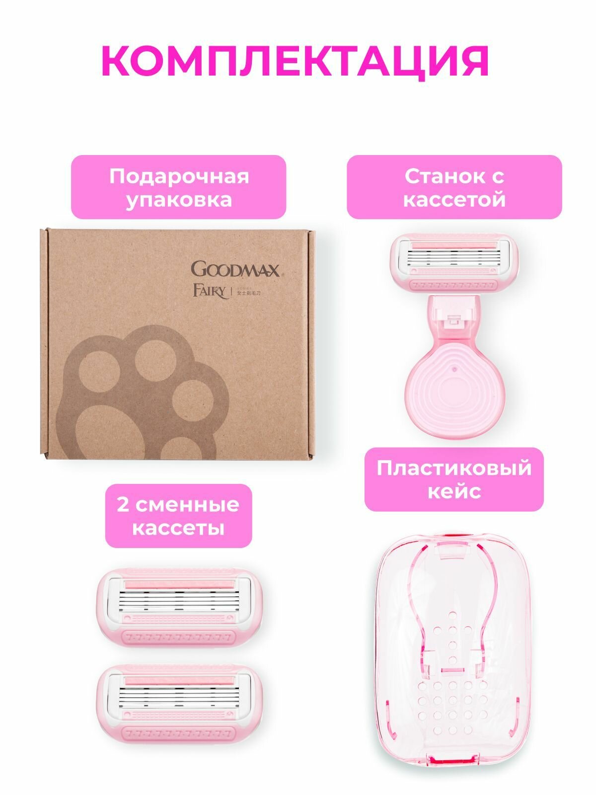 СохранитьПортативная женская бритвенная система GoodMax Fairy mini бритва с 3 сменными кассетами 4 лезвия произведенных в Швеции с дорожным чехлом интересное: