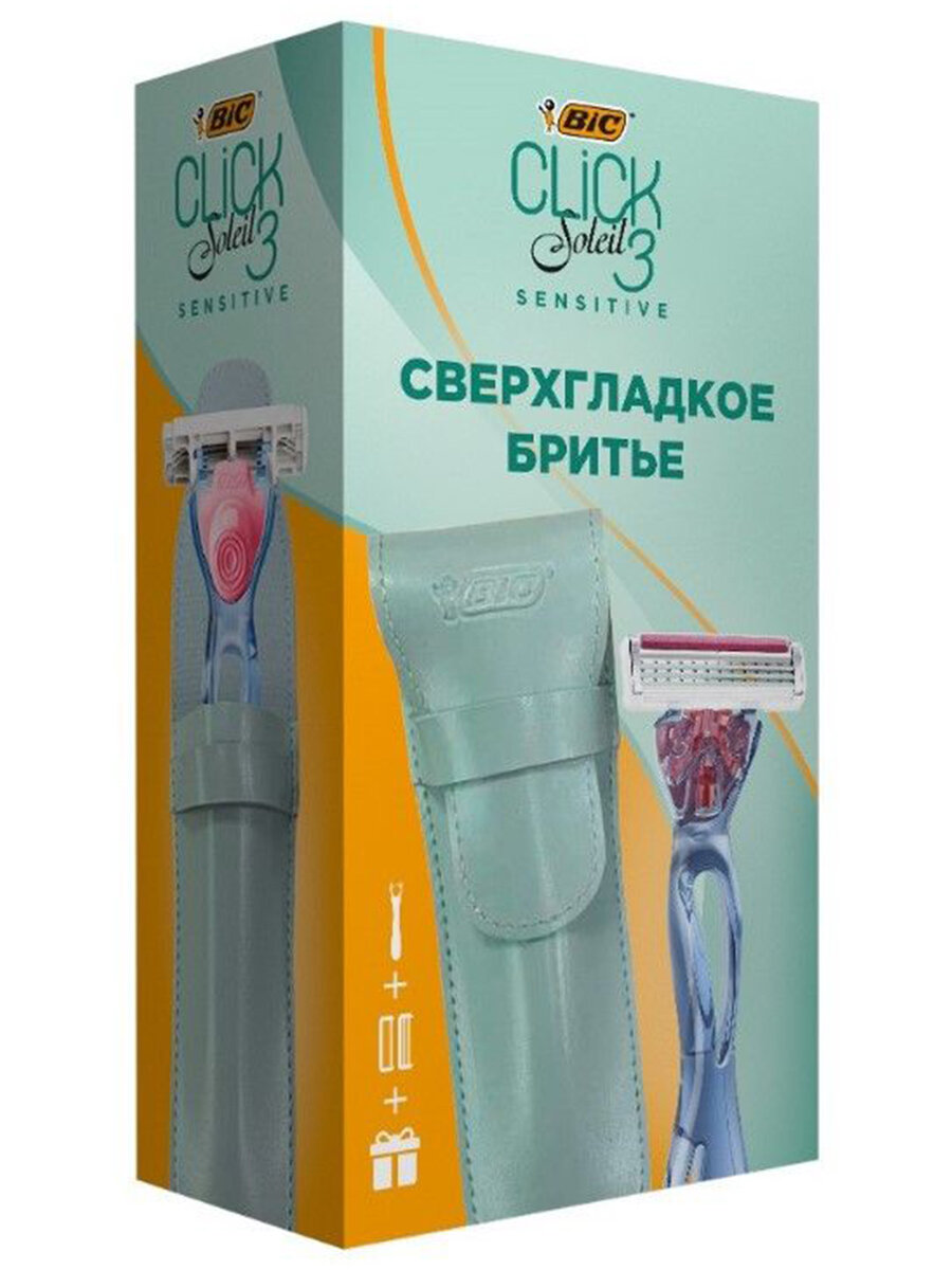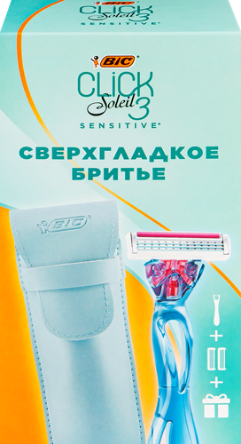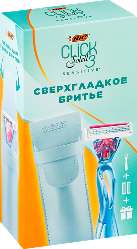 Женская бритва BIC Click 3 Soleil Sensitive 2 сменные кассеты для бритья + чехол для бритвы в подарок Набор БИК