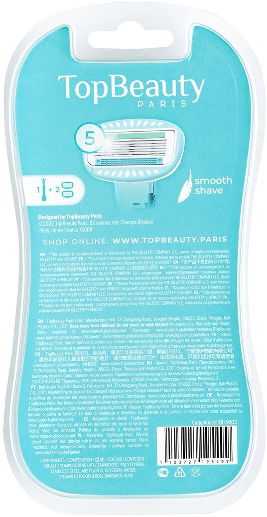 Купить Подарочный набор Top Beauty Paris Бритва + 2 сменные кассеты, 5 лезвий