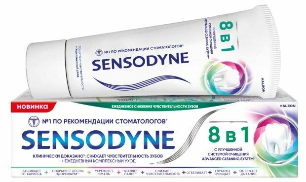 Зубная паста Sensodyne, 8 в 1, комплексный уход, с фтором, 75 мл интересное: