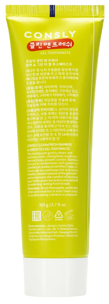 Гелевая зубная паста Consly Clean&Fresh с экстрактами бамбука и зеленого чая, 105 г