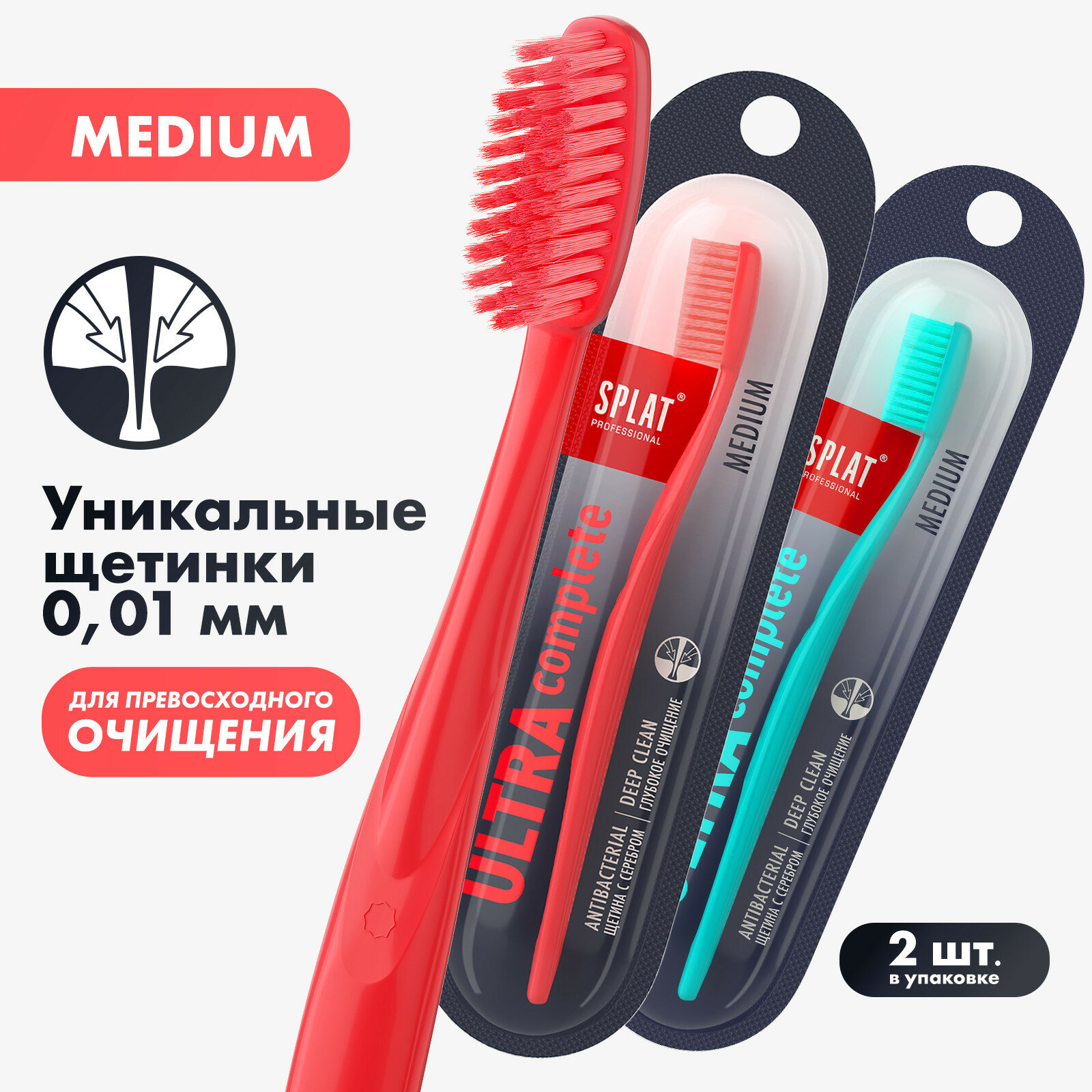 Купить Инновационная зубная щетка SPLAT Professional ULTRA COMPLETE. Medium / сплат Профешнл ультра комплит. Средняя, коралловая и голубая(2 шт)