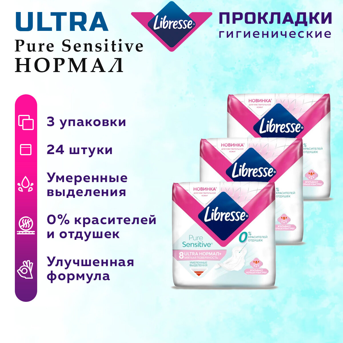 Купить LIBRESSE ULTRA PURE SENSITIVE Прокладки нормал, 8 шт, 3 уп