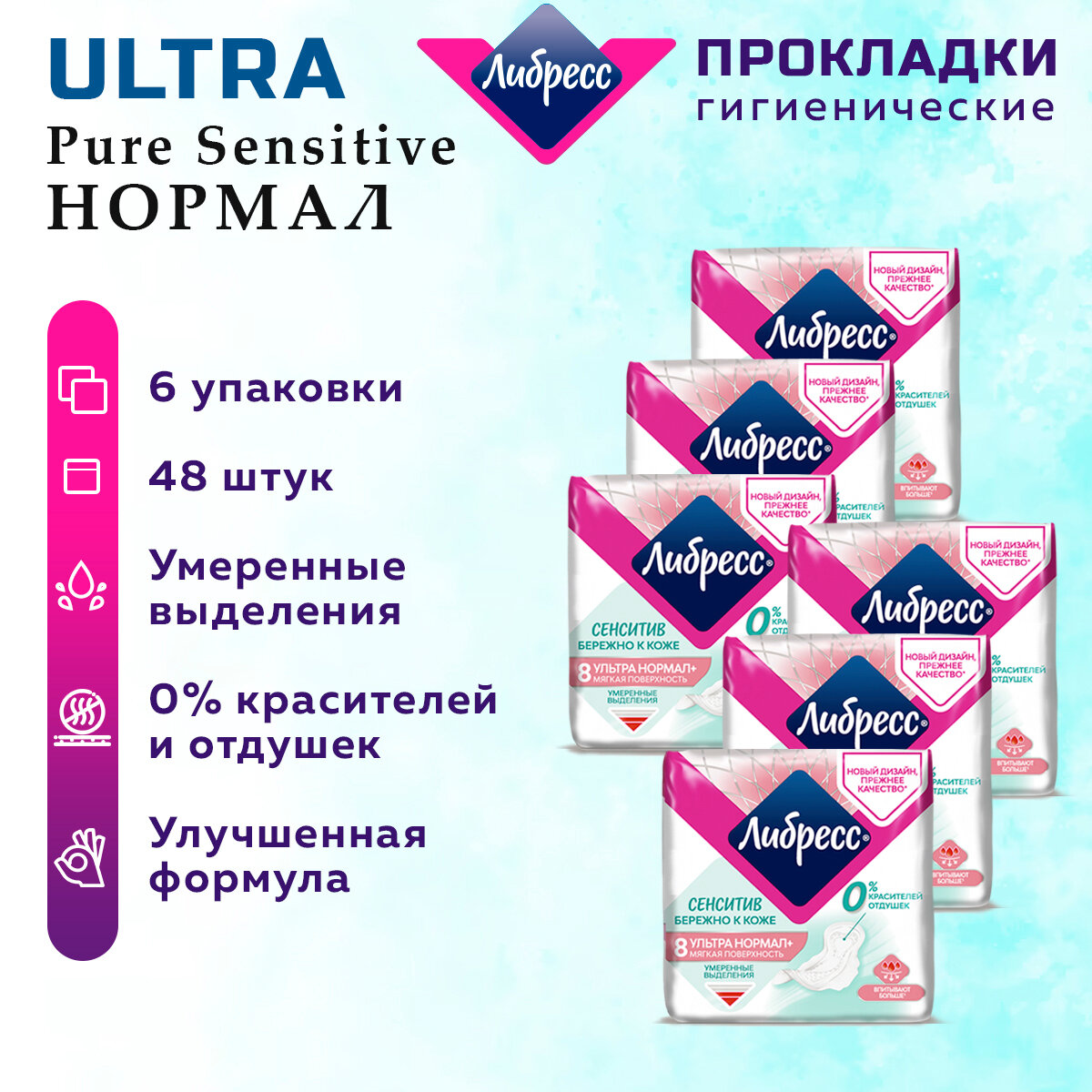 Libresse Прокладки гигиенические Ultra Sensitive Pure Нормал, 8 шт, 6 уп /