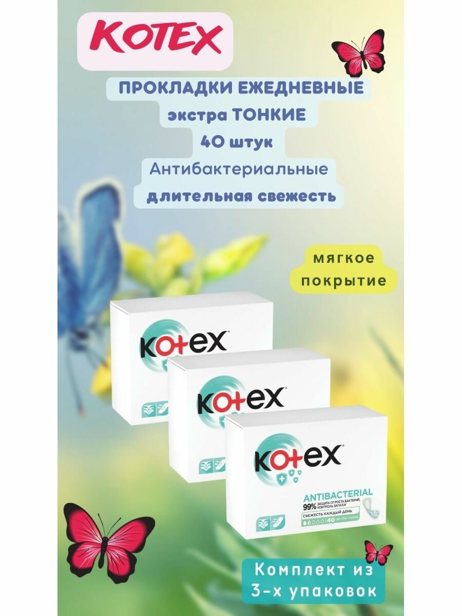 Ежедневные прокладки Kotex Antibacterial, с антибактериальным слоем, экстра тонкие, 40 шт