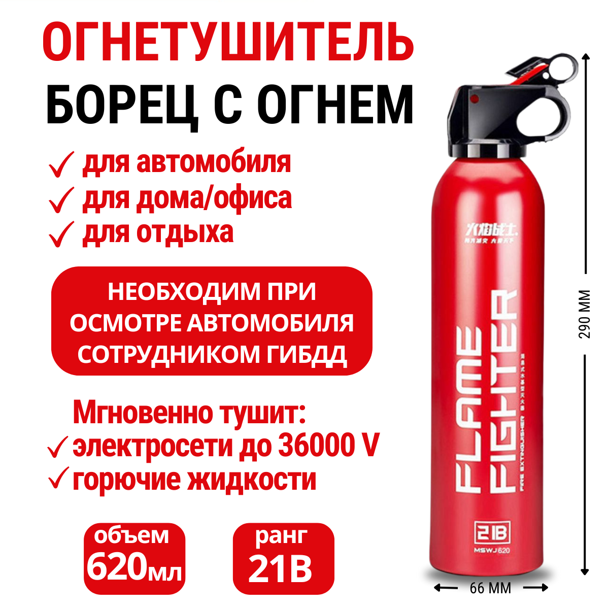 Огнетушитель автомобильный воздушно-эмульсионный Борец с огнем, аэрозольный, 0,62 л интересное: