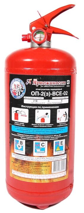 Огнетушитель а/м 2кг порошковый с манометром (металл) (BCE) (г.Ярославль) Ярпожинвест ОП-2 BCE интересное: