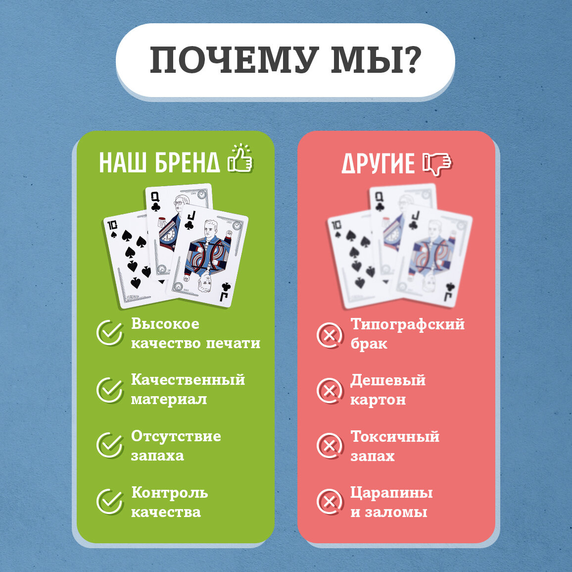 | Подробная комплектация | 52 игральные карты, 2 джокера, 2 рекламные карты |