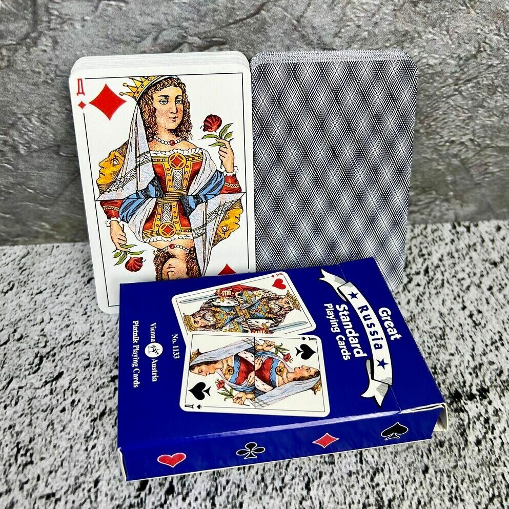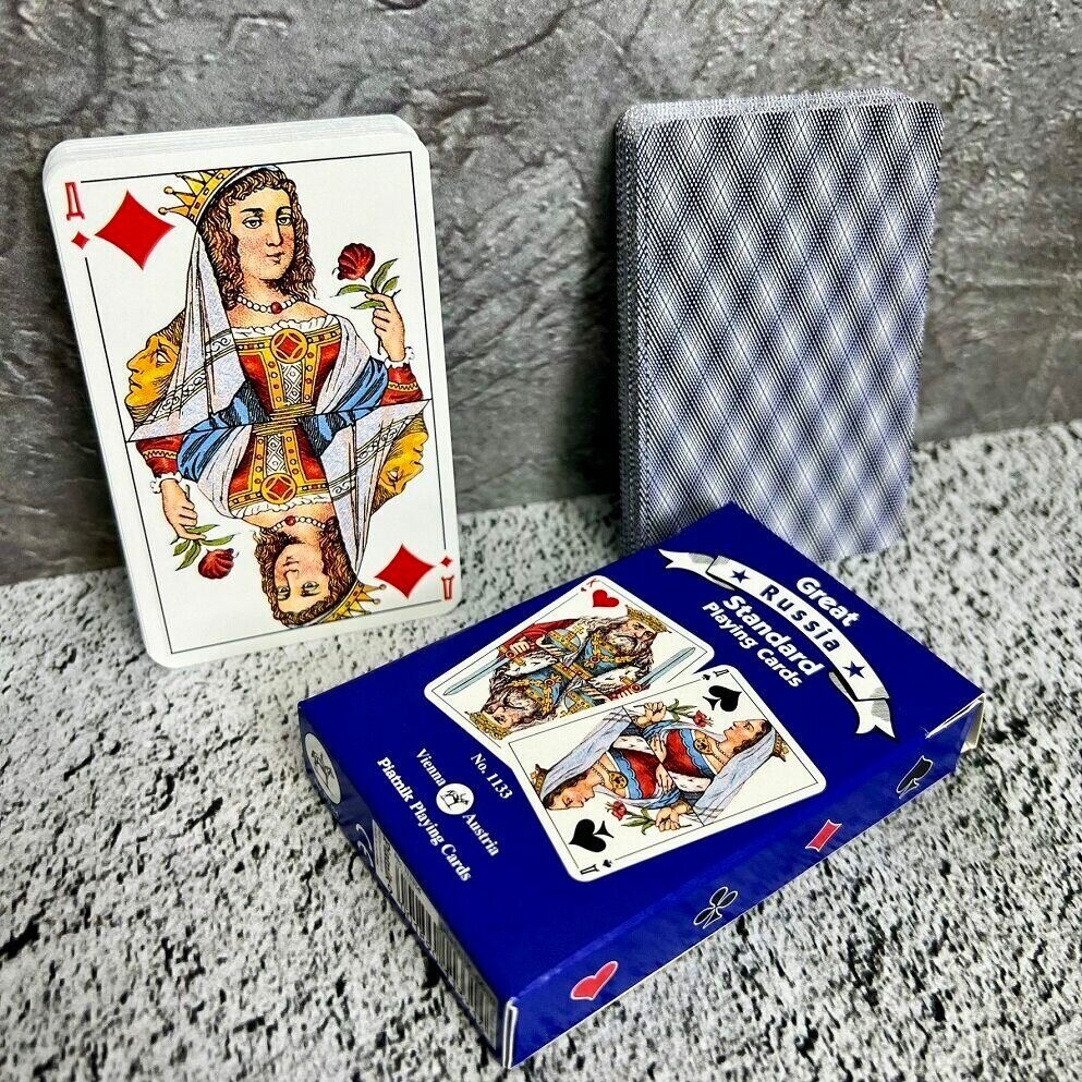Игральные карты Русский стандарт , Piatnik , синяя рубашка, 54 листа интересное: