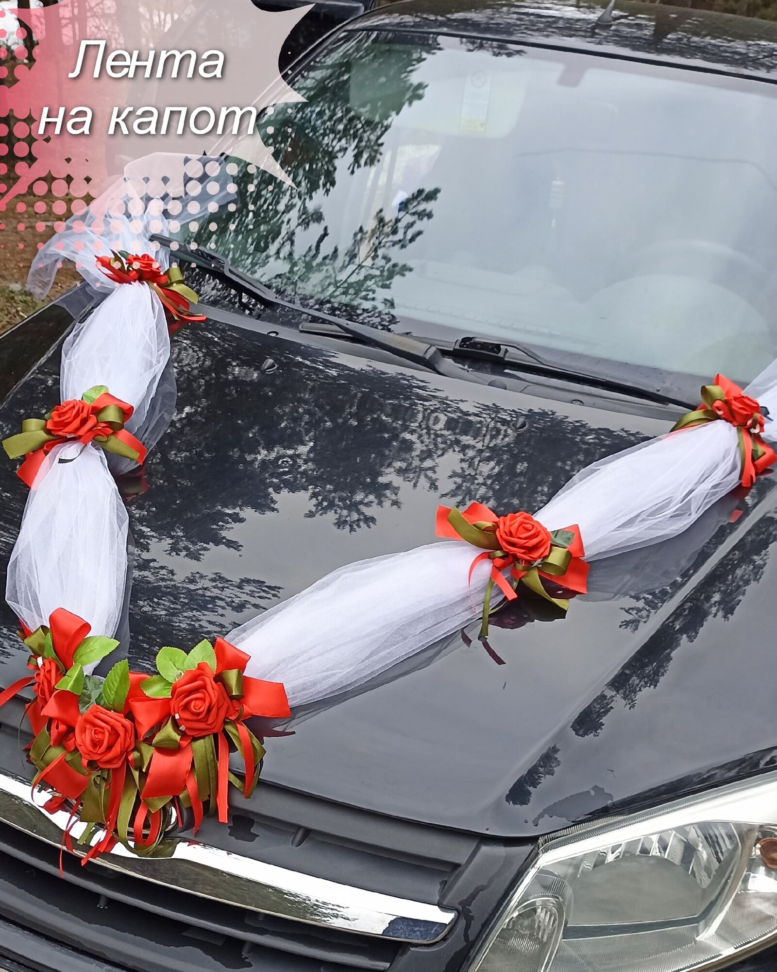 Свадебная лента на капот. Украшение на свадебный автомобиль.