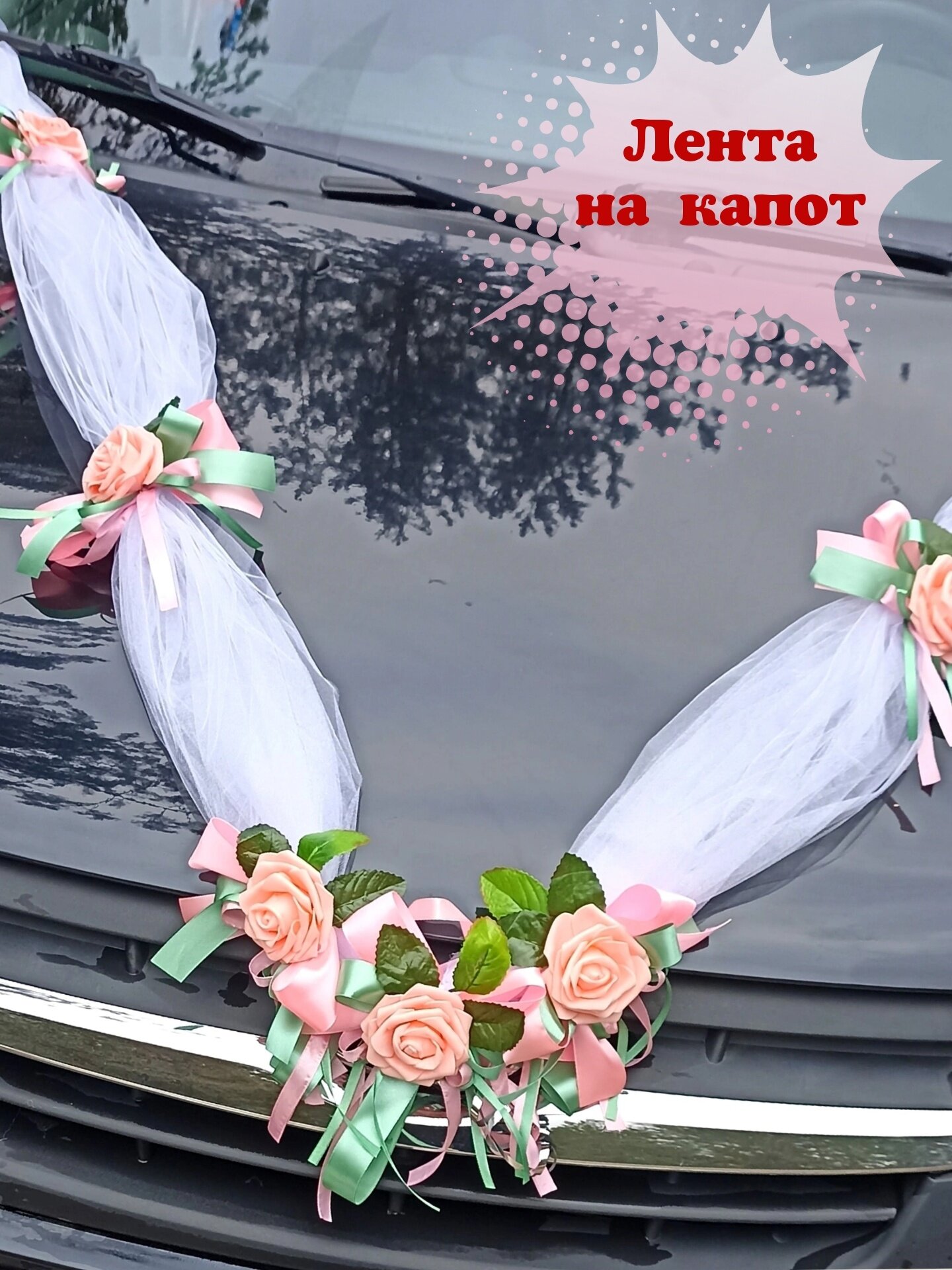 Свадебная лента на капот. Украшение на свадебный автомобиль.