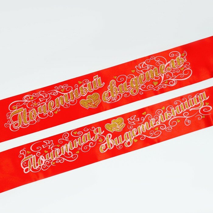 Купить Набор лент "Свидетель и свидетельница", атлас, красный, 3D, 2 шт