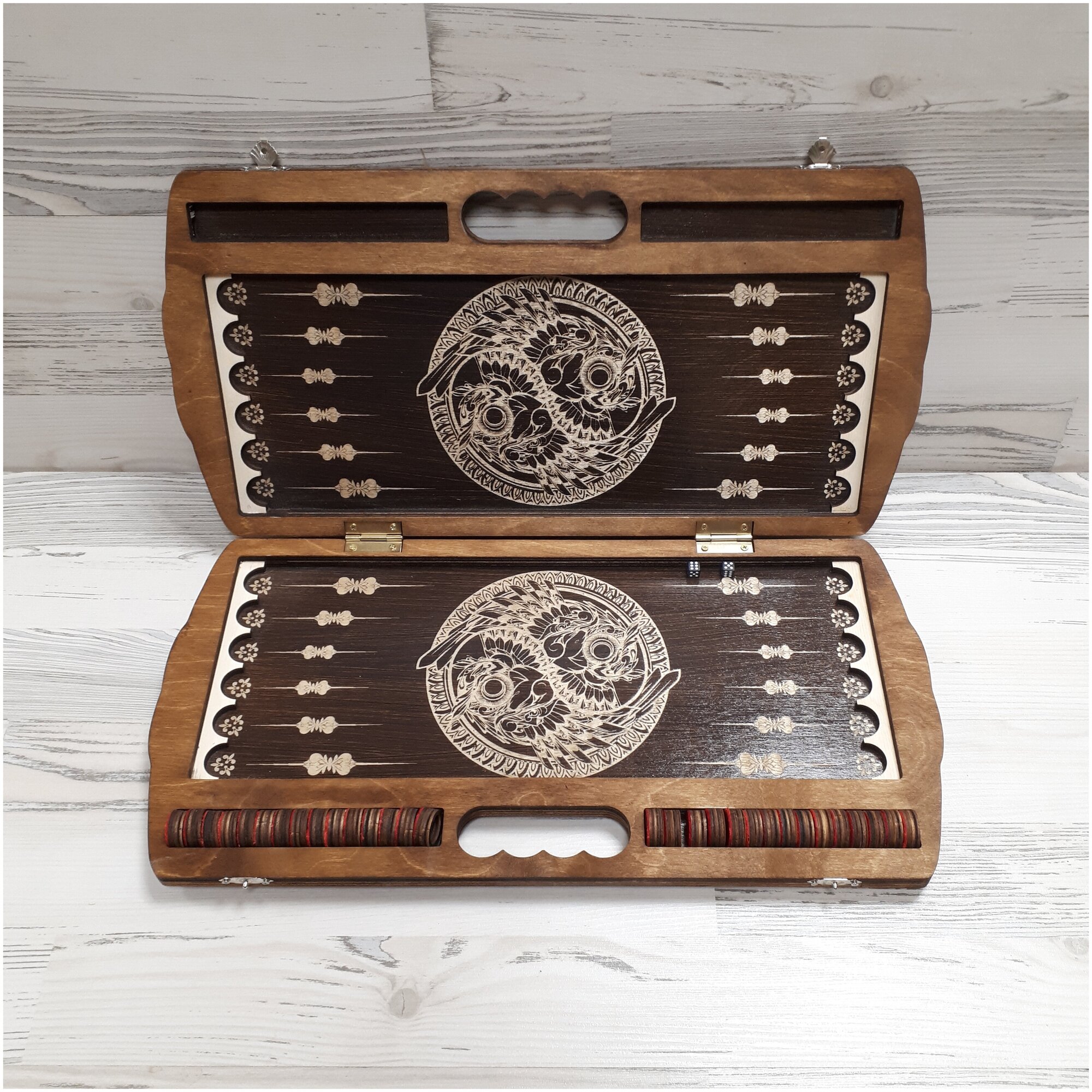 | Подробная комплектация | Нарды, по 15 фишек каждого цвета, 2 кубика. +по одной запасной фишки каждого цвета. |