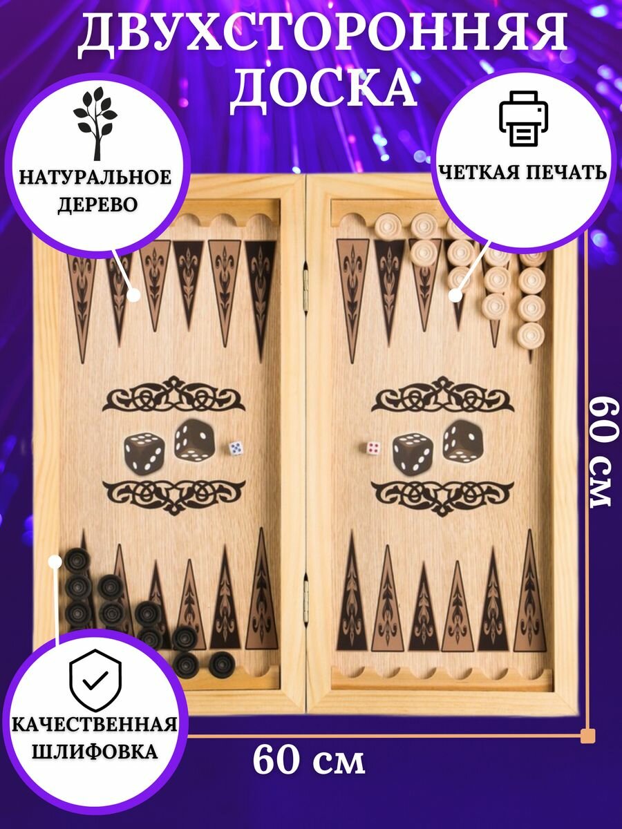 | Подробная комплектация | В комплекте игральные кости и фишки для нард. |
