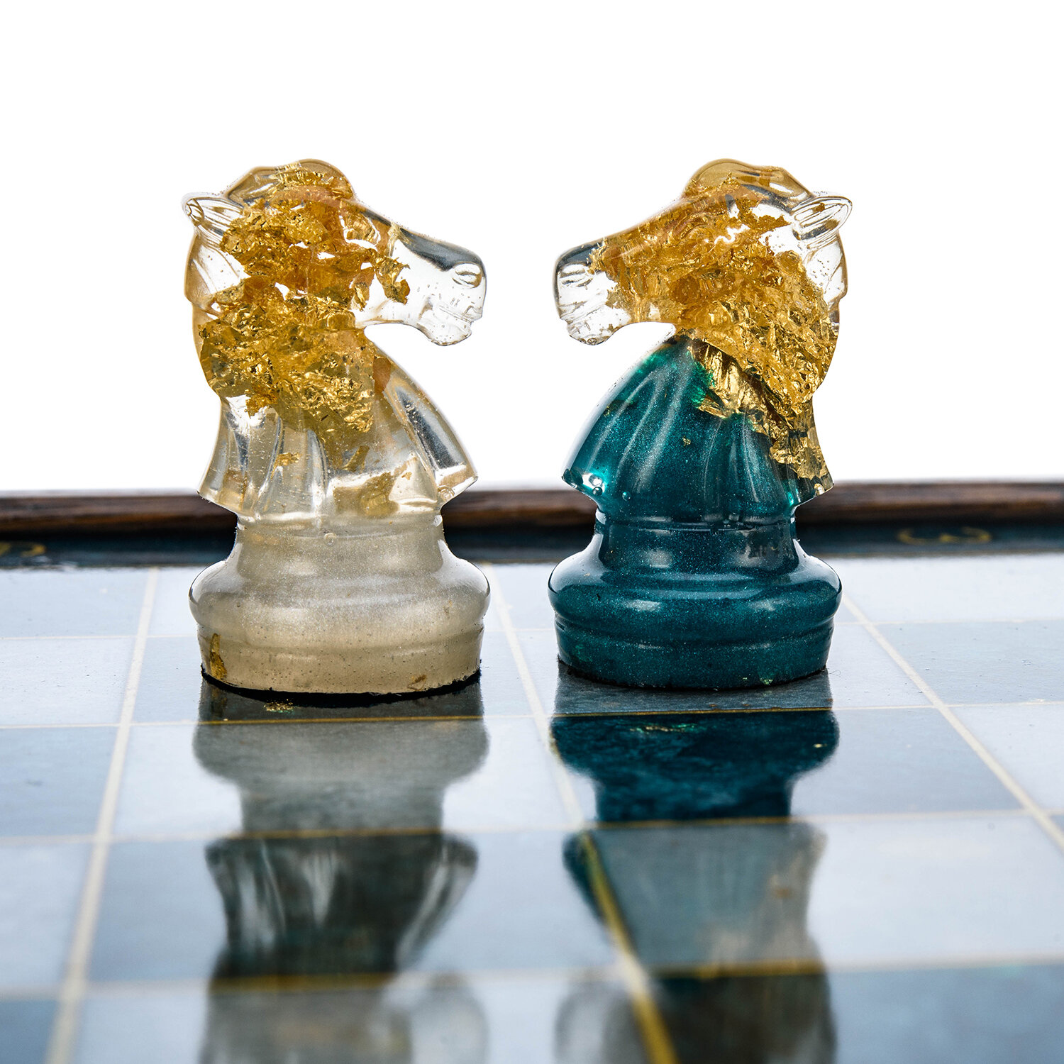 Купить Шахматы с фигурами из эпоксидной смолы 32х32 см