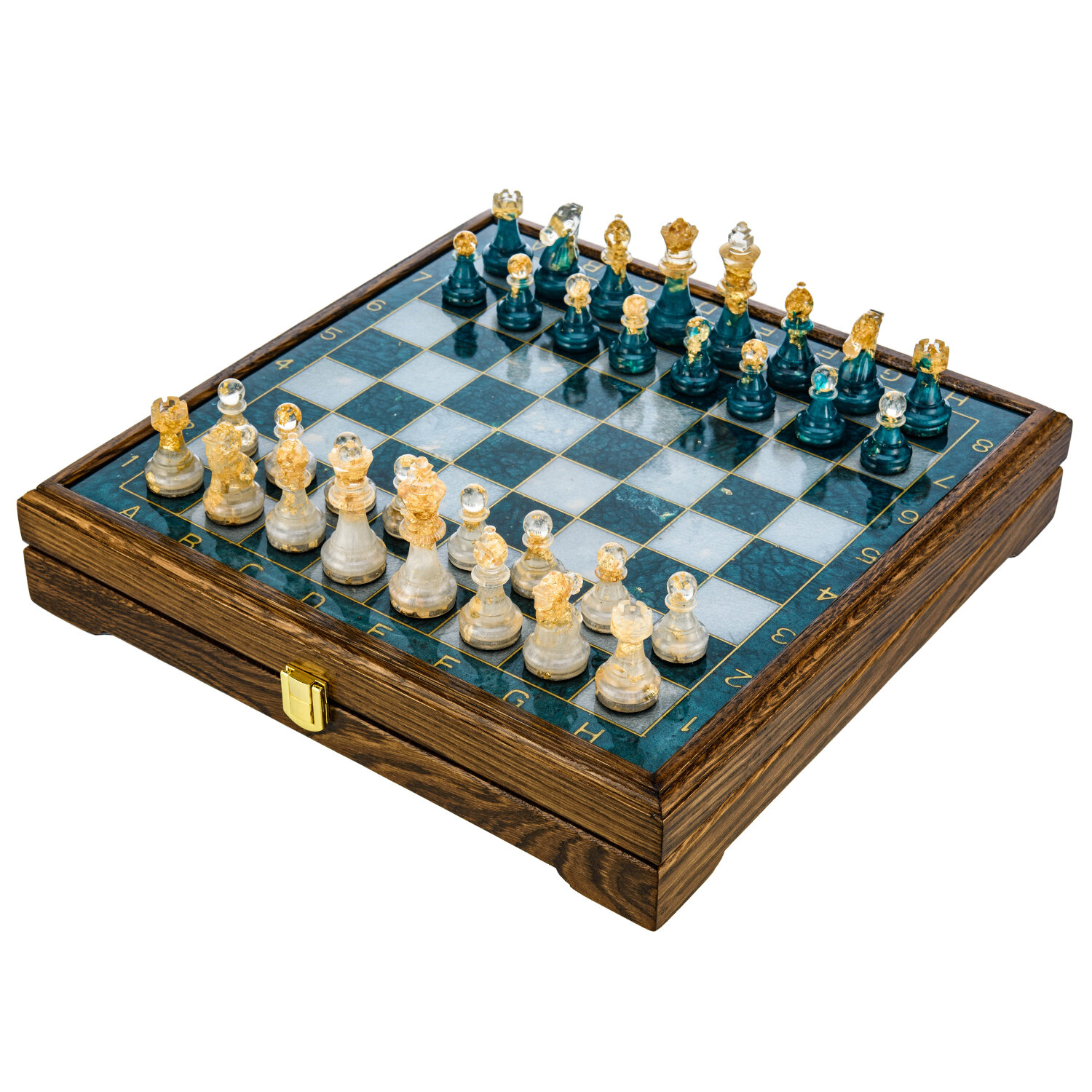 Шахматы с фигурами из эпоксидной смолы 32х32 см интересное: