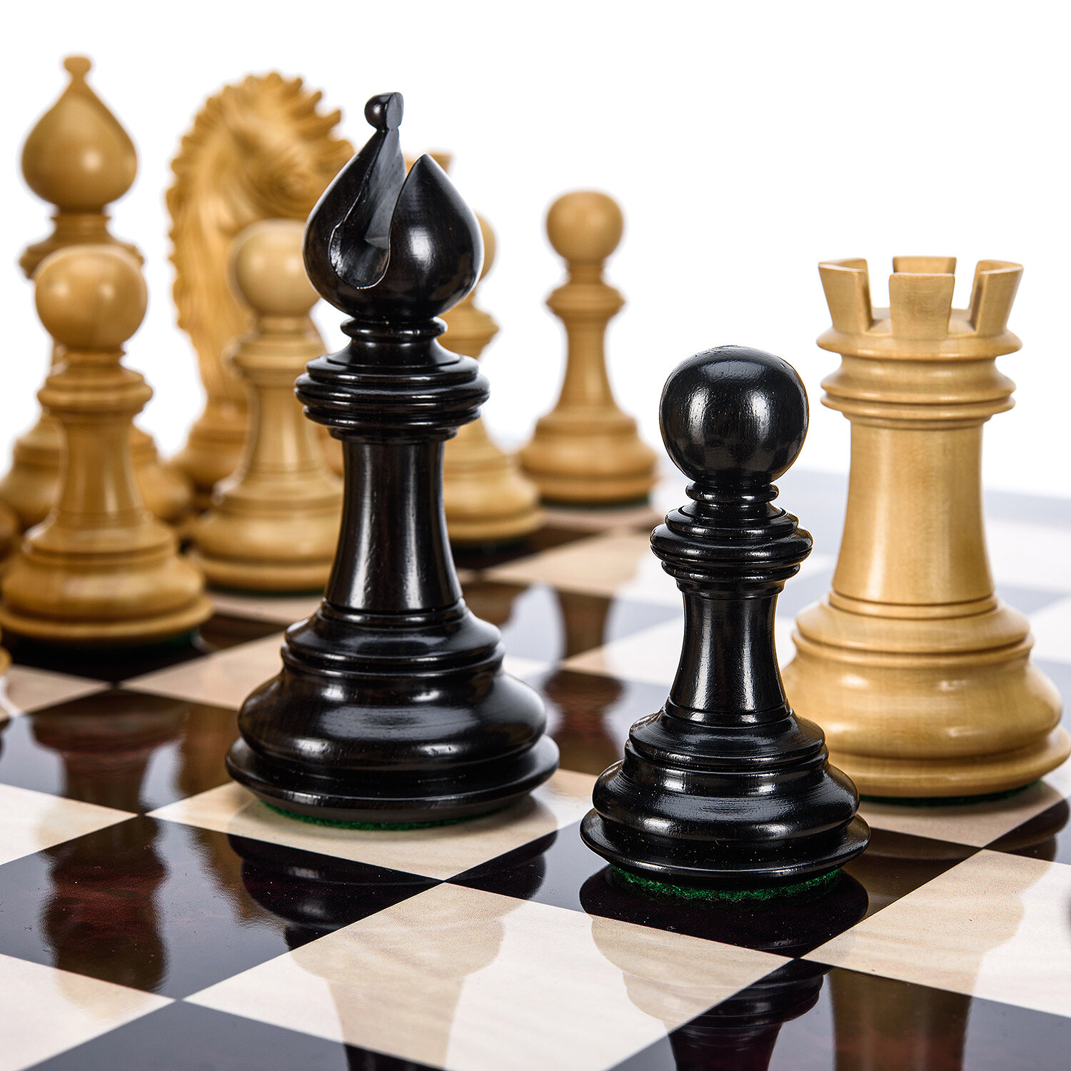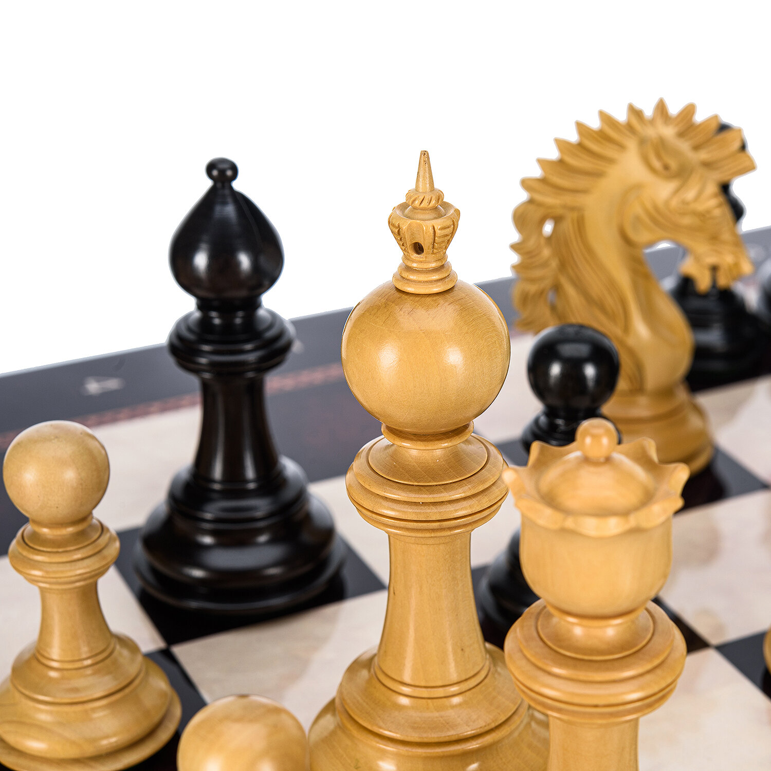 Шахматы из карельской березы с фигурами из янтаря 45х45 см