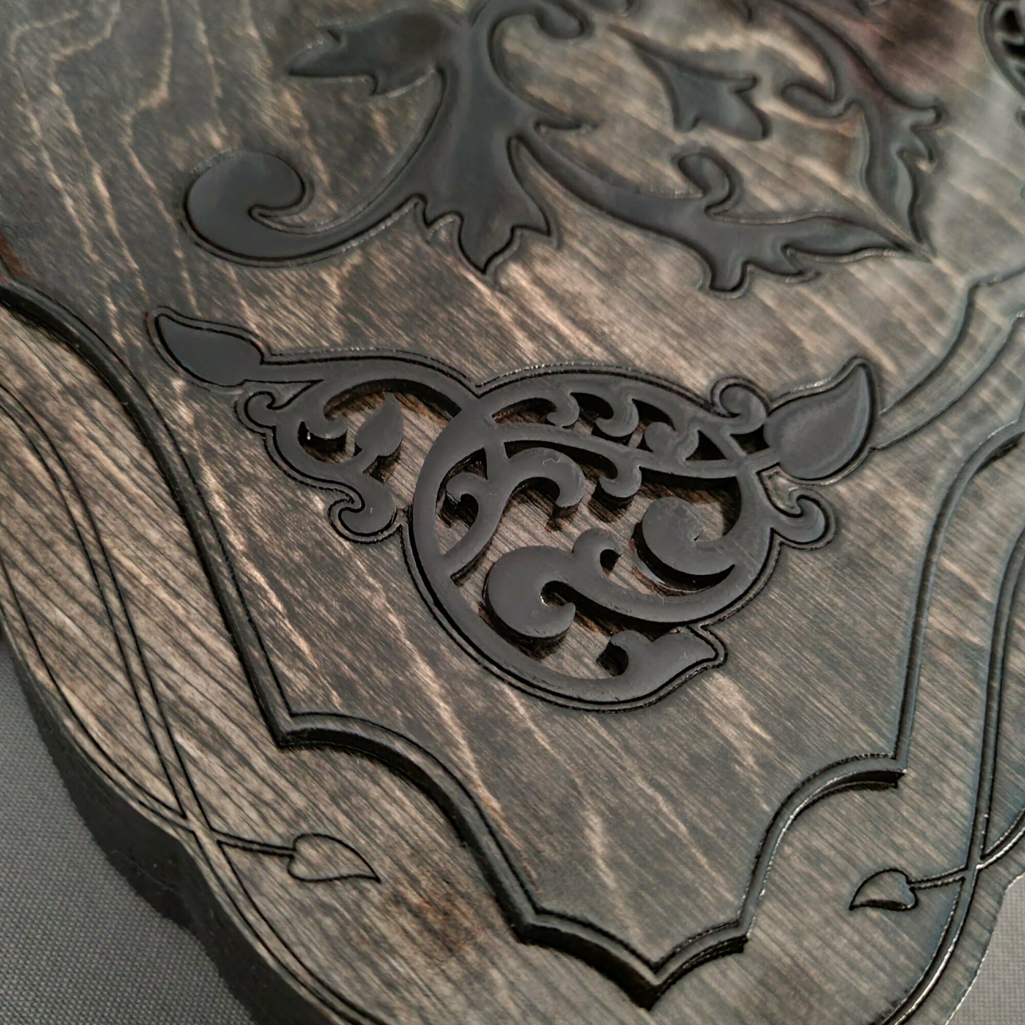 Шахматы из карельской березы с фигурами из янтаря 45х45 см