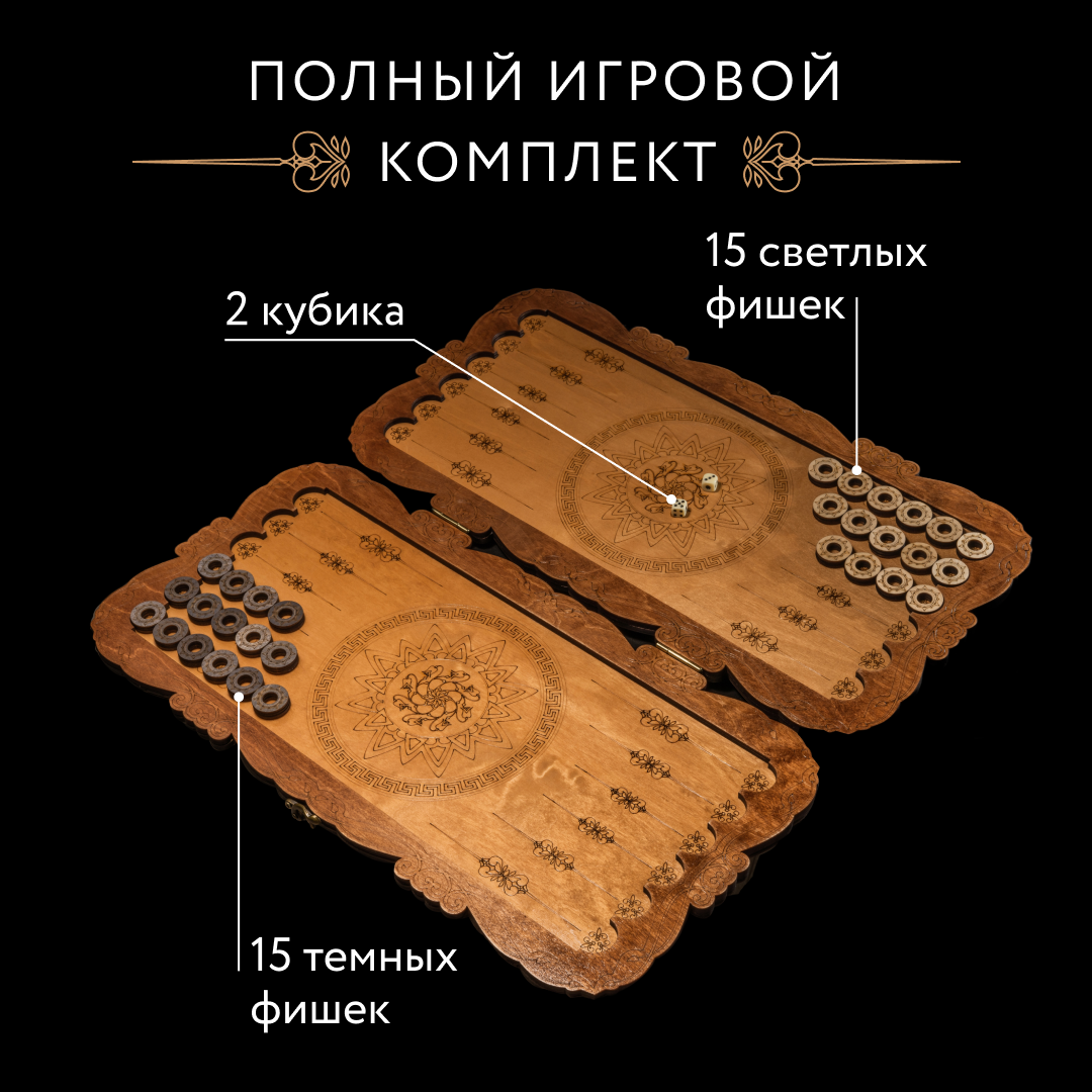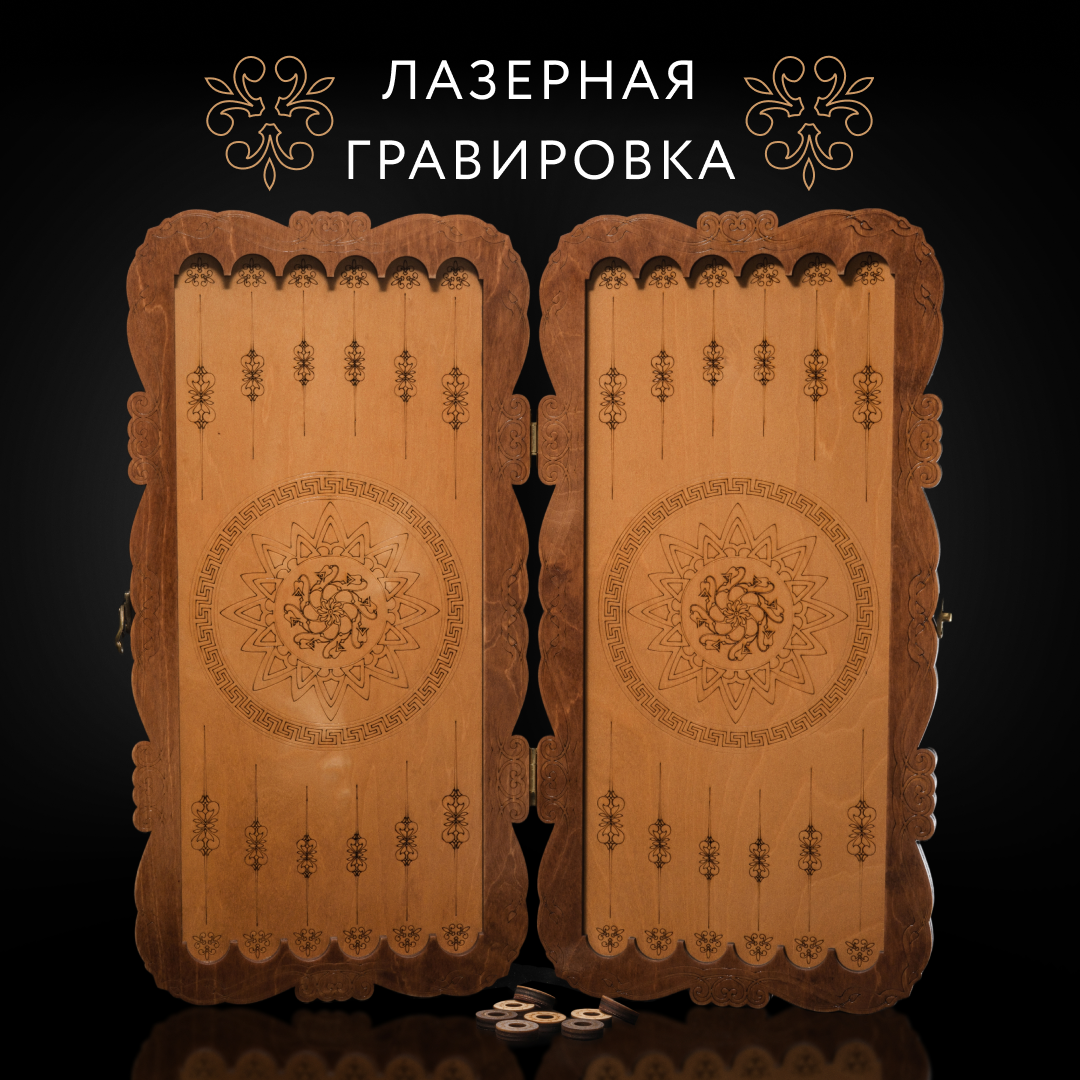 Нарды деревянные дорожные резные из дерева 40 см лакированные Стелла