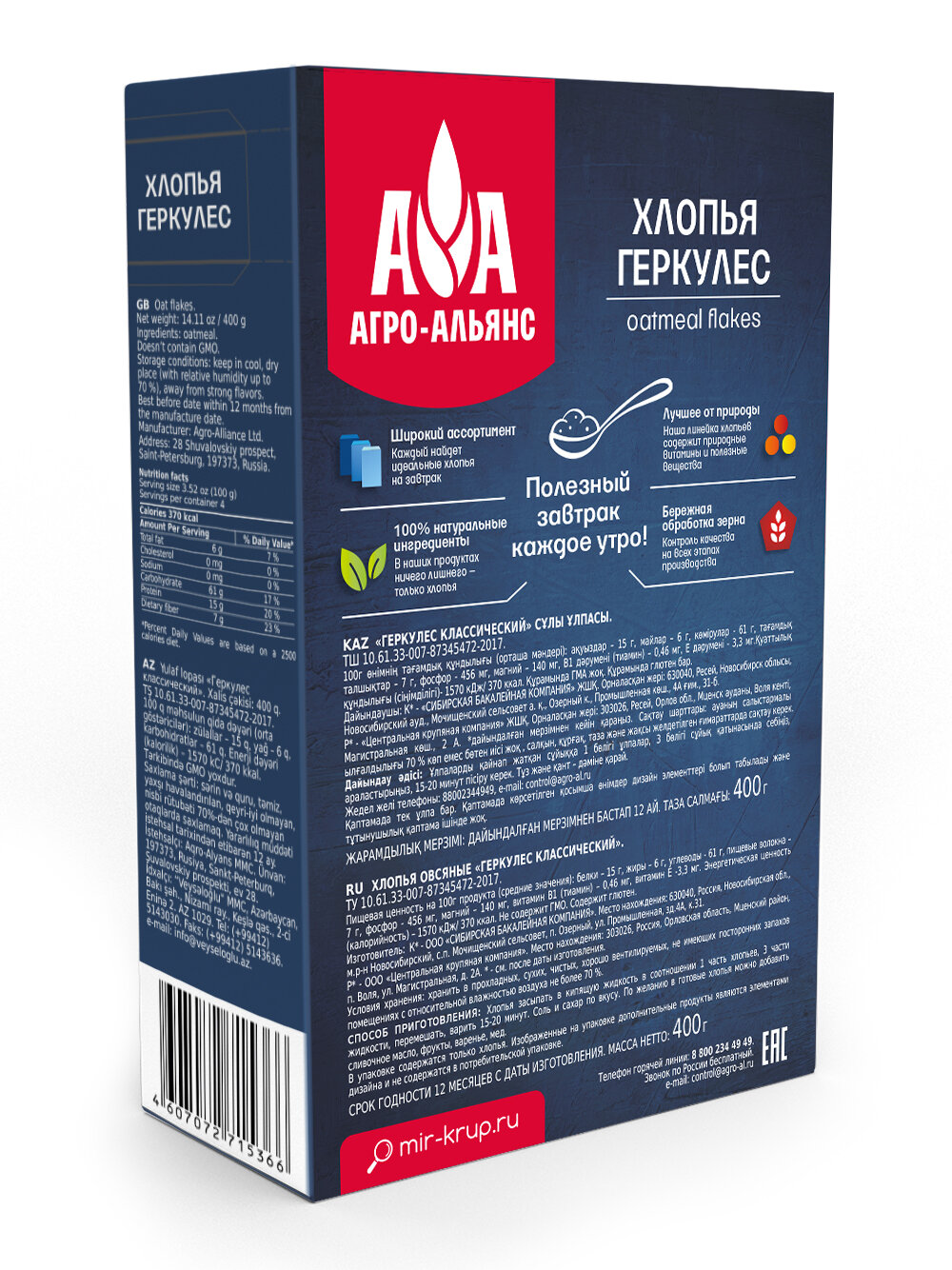 Хлопья Геркулес традиционный "Агро-Альянс Экстра" 400 г интересное: