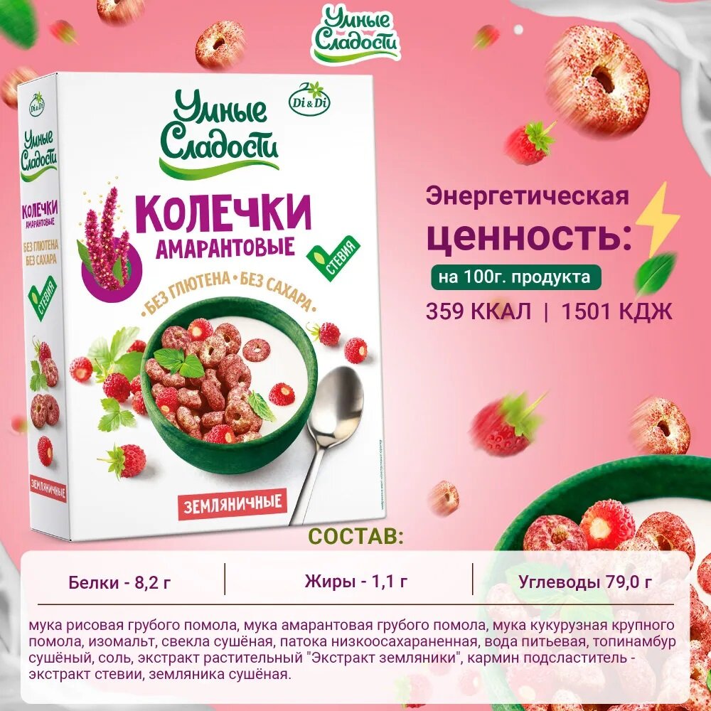 Колечки Умные сладости амарантовые Земляничные, 150 гр интересное: