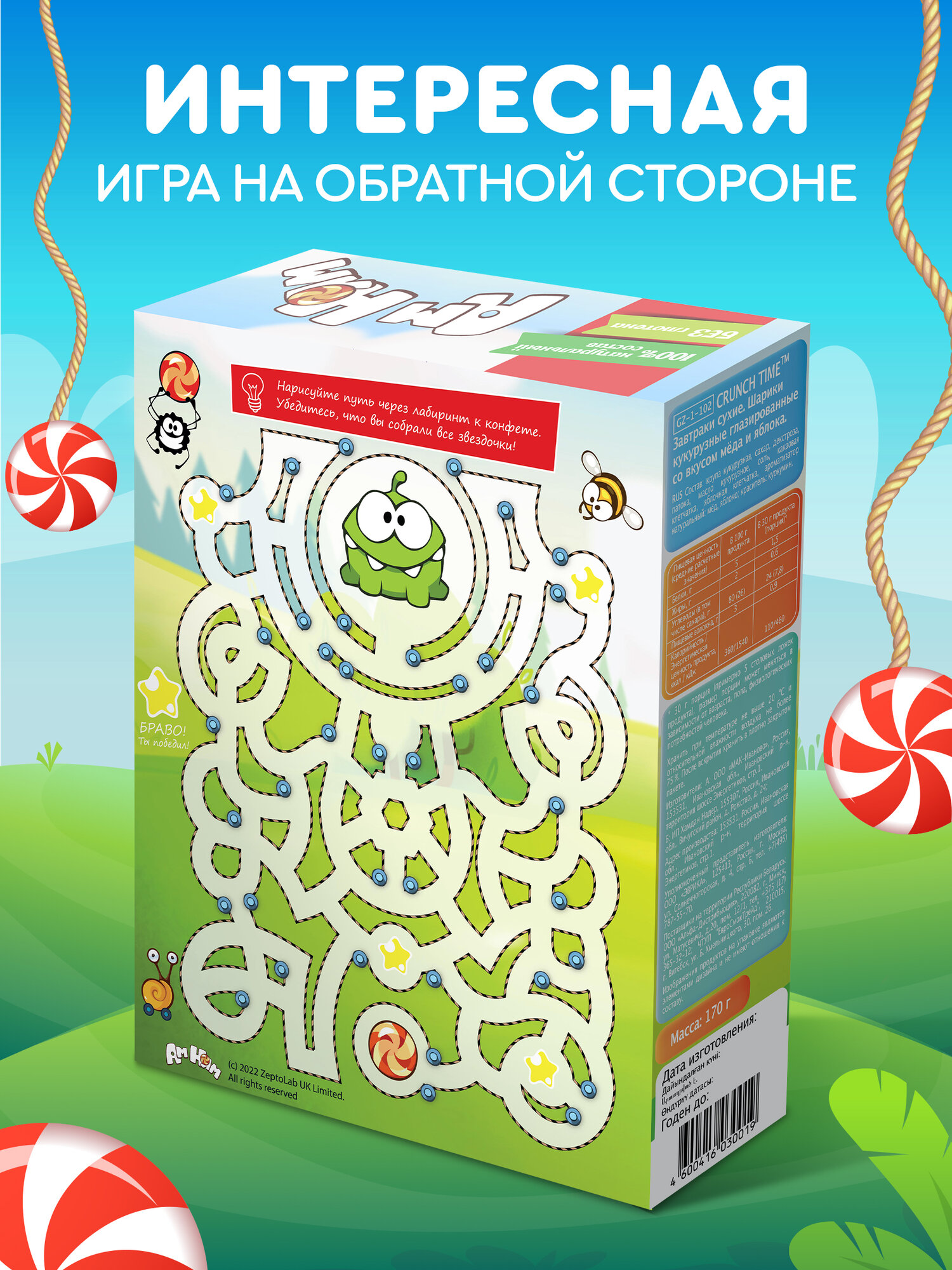 Натуральный сухой завтрак детский шарики кукурузные со вкусом меда и яблока АМ-НЯМ CRUNCH TIME 170 г Готовый перекус интересное: