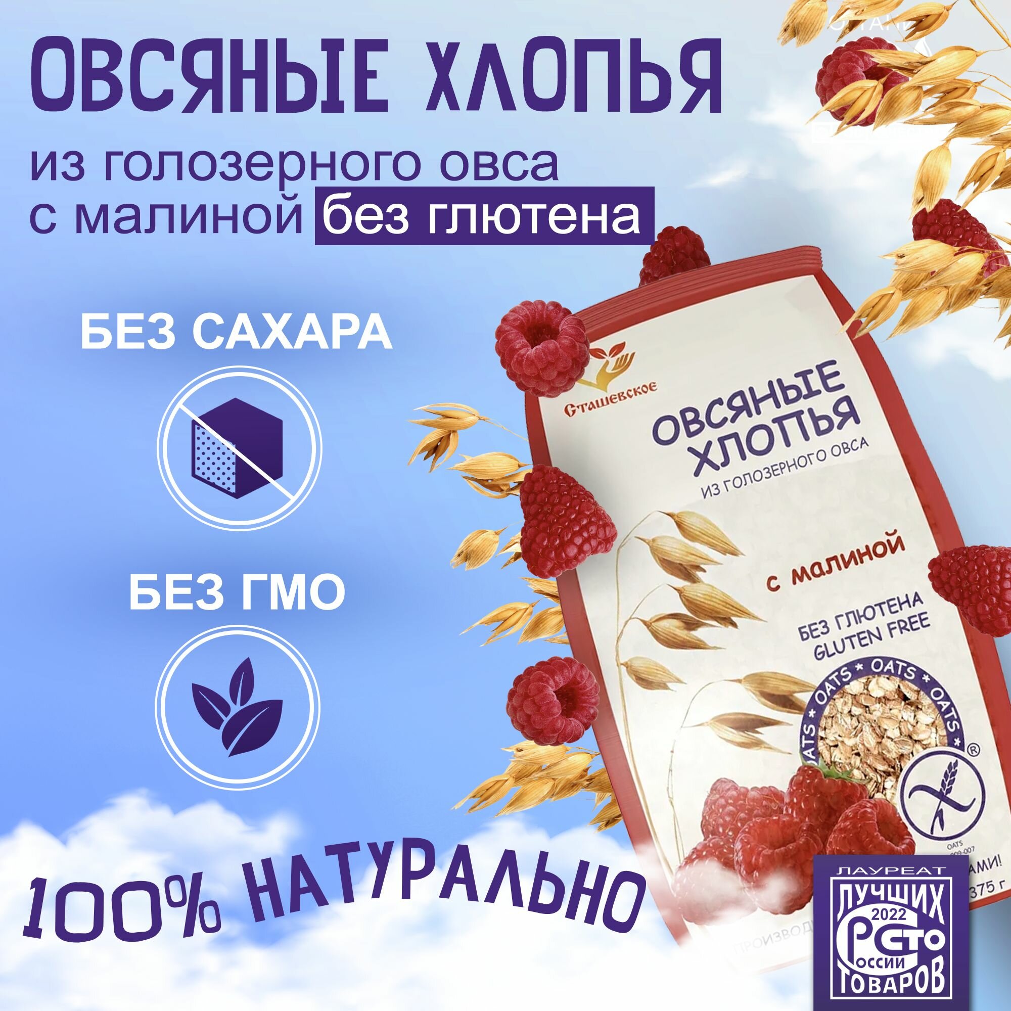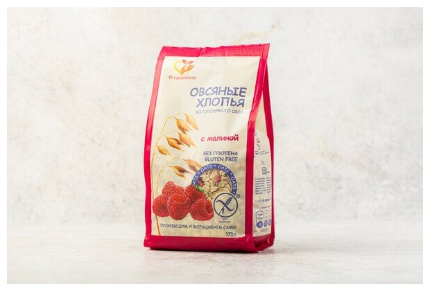 Овсяные хлопья из голозерного овса с малиной без глютена "Сташевское" интересное: