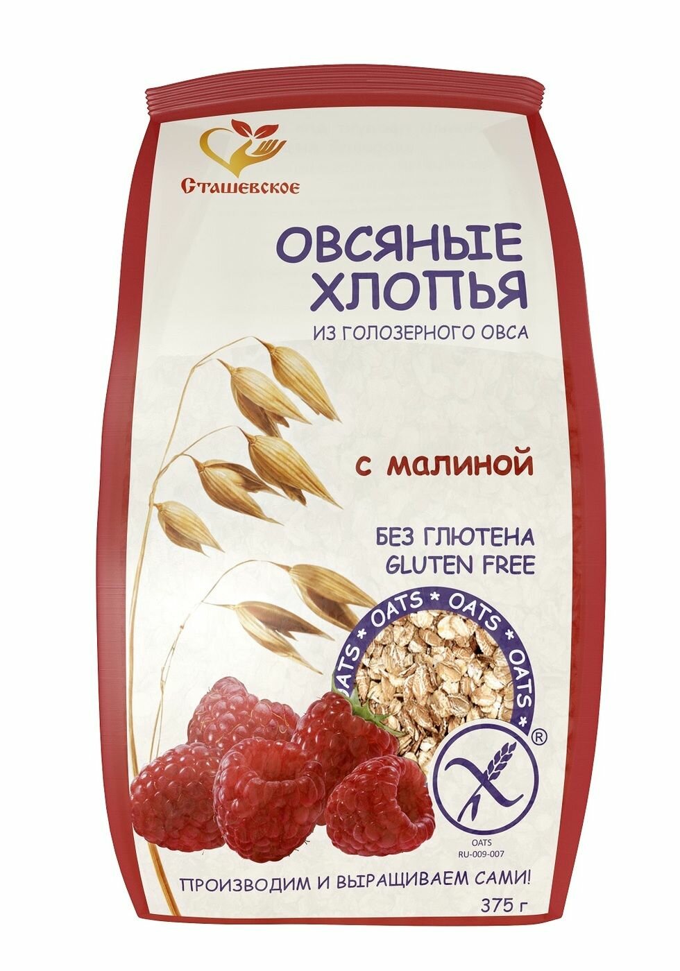 Купить Овсяные хлопья из голозерного овса с малиной без глютена "Сташевское"