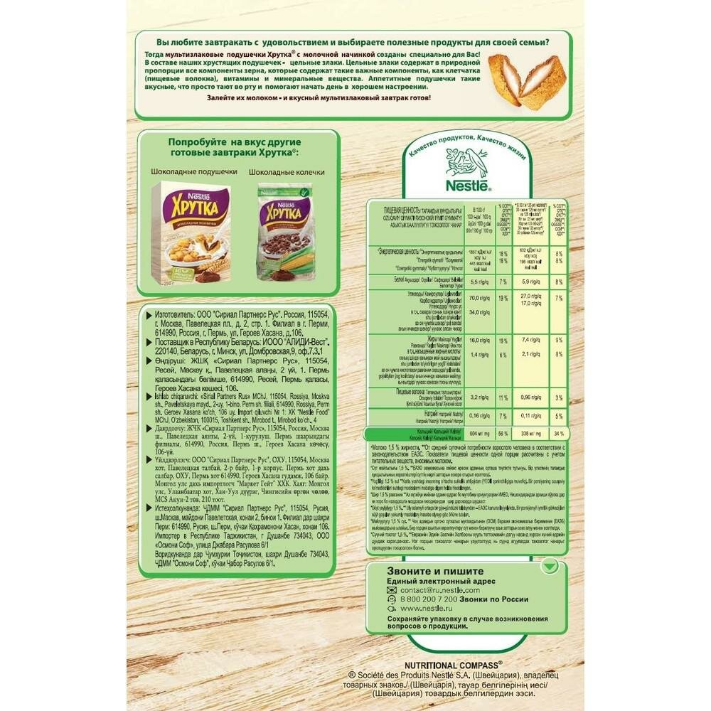 Завтрак Подушечки Хрутка хрустящие мультизлаковые с молочной начинкой, 250г интересное: