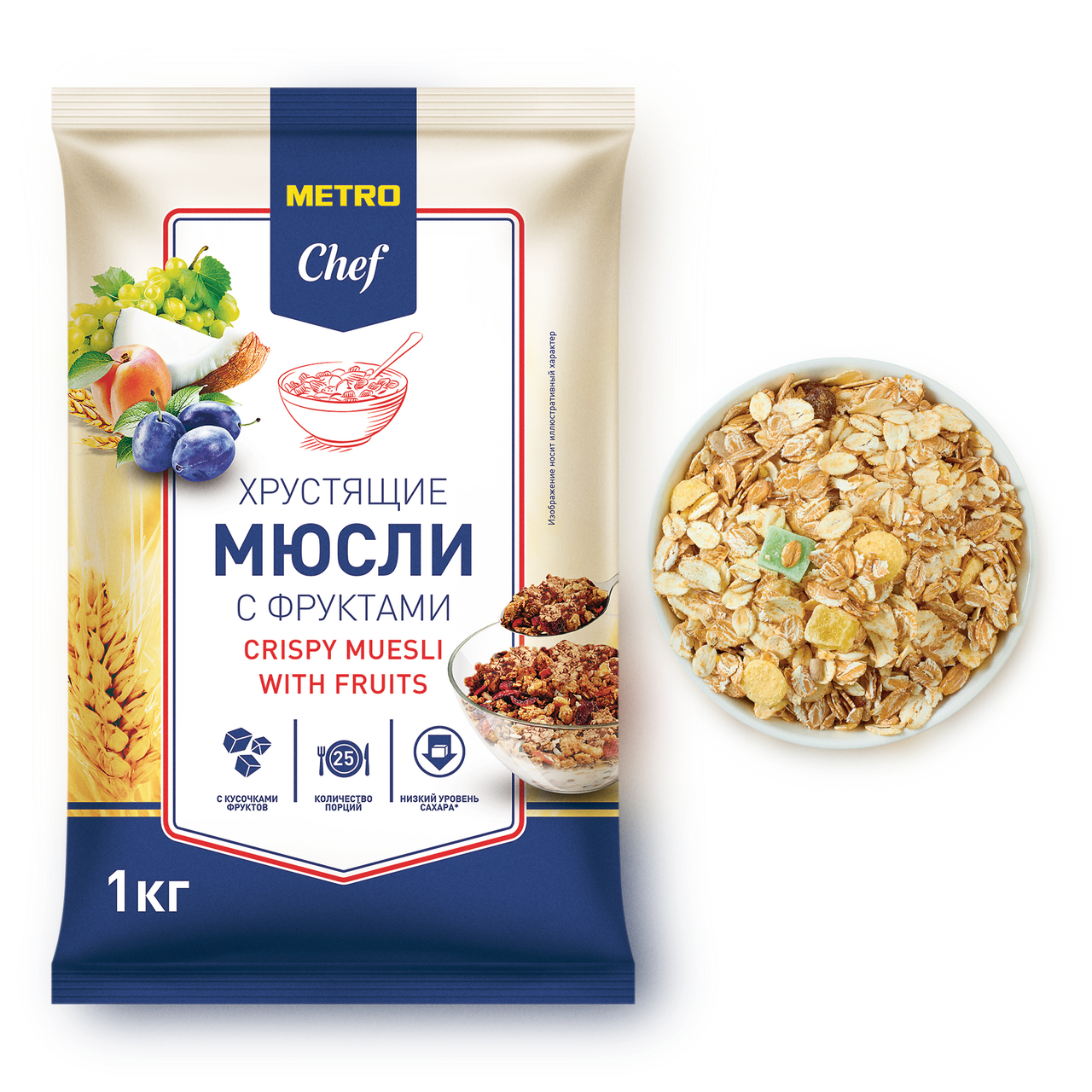 Купить Мюсли Metro Chef хрустящие с кусочками фруктов 1 кг