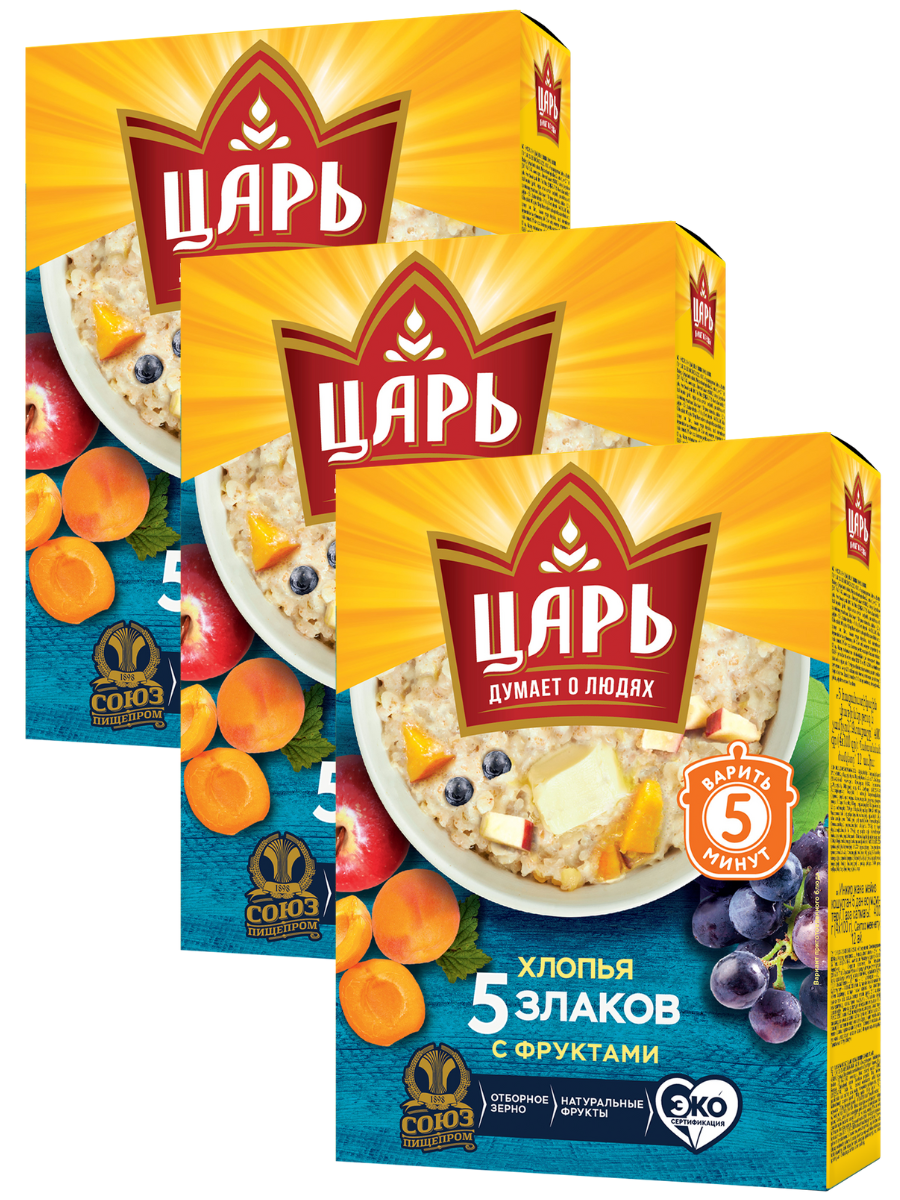 Хлопья 5 злаков с фруктами "Царь" 400гр.х3шт. интересное:
