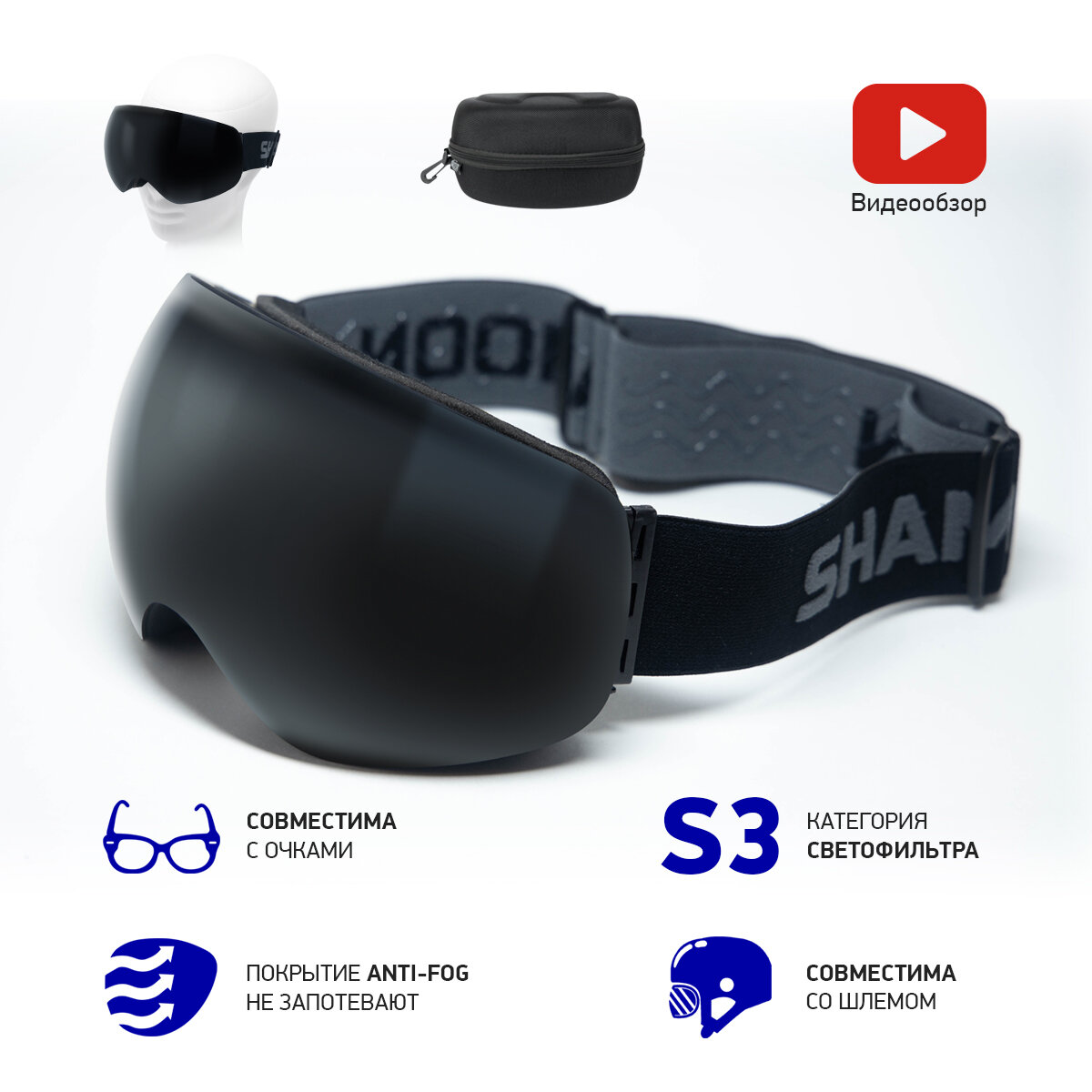 | Особенности | УФ-защита / антибликовое покрытие / вентиляция / защита от запотевания / ношение поверх очков |